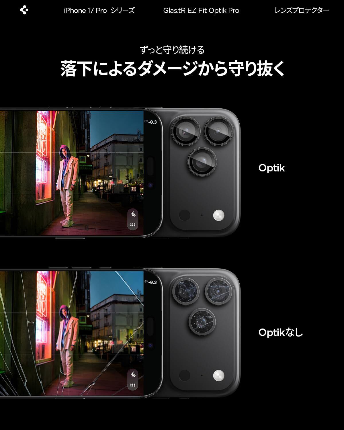 ■【全面保護で安心のカメラレンズ!】SpigenのiPhone 17 Pro / 17 Pro Max用カメラ保護フィルムは、レンズ部分をしっかり守る設計で、大切なカメラを外部からの傷や衝撃から完全に保護します。日常的な使用はもちろん、アウトドアでも安心して使用できます✨。