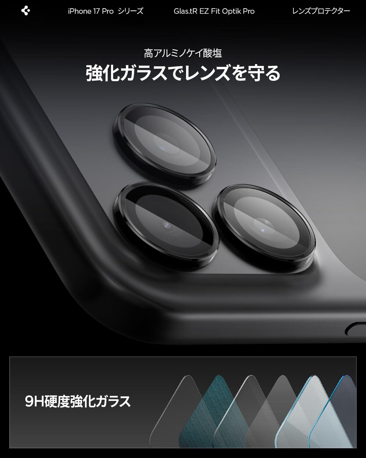 【新着商品】Spigen iPhone 17 Pro / 17 Pro Max カメラ保護フィルム iPhone 16 Pro / 16 Pro Max 対応 ブラック色 9H硬度強化ガラス レンズプロテクター 2枚入 AGL05205 | SmartLiving+