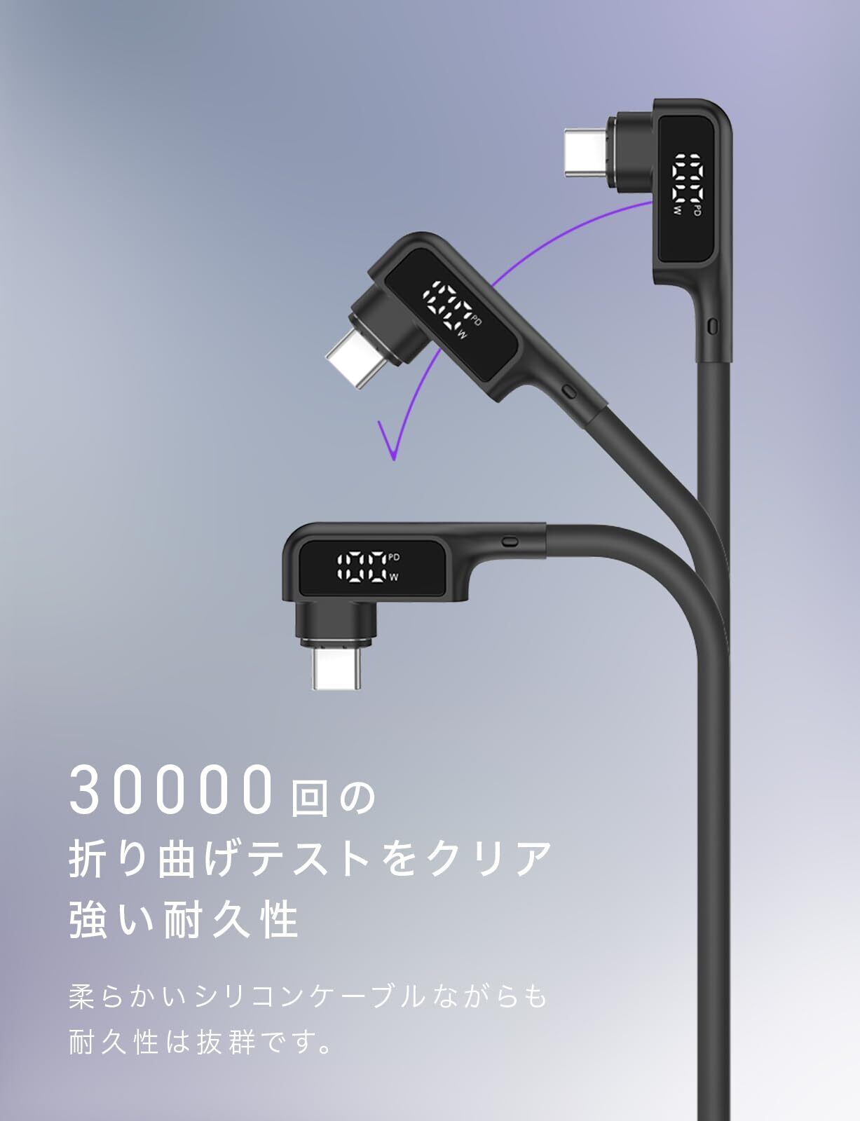 ■【リアルタイムで充電状況が確認できる液晶ディスプレイ搭載!】このケーブルには、充電出力やデータ転送速度を表示する液晶ディスプレイがついており、視覚的に充電状況を把握できます。便利なインフォメーションで、使用感が向上します✨。