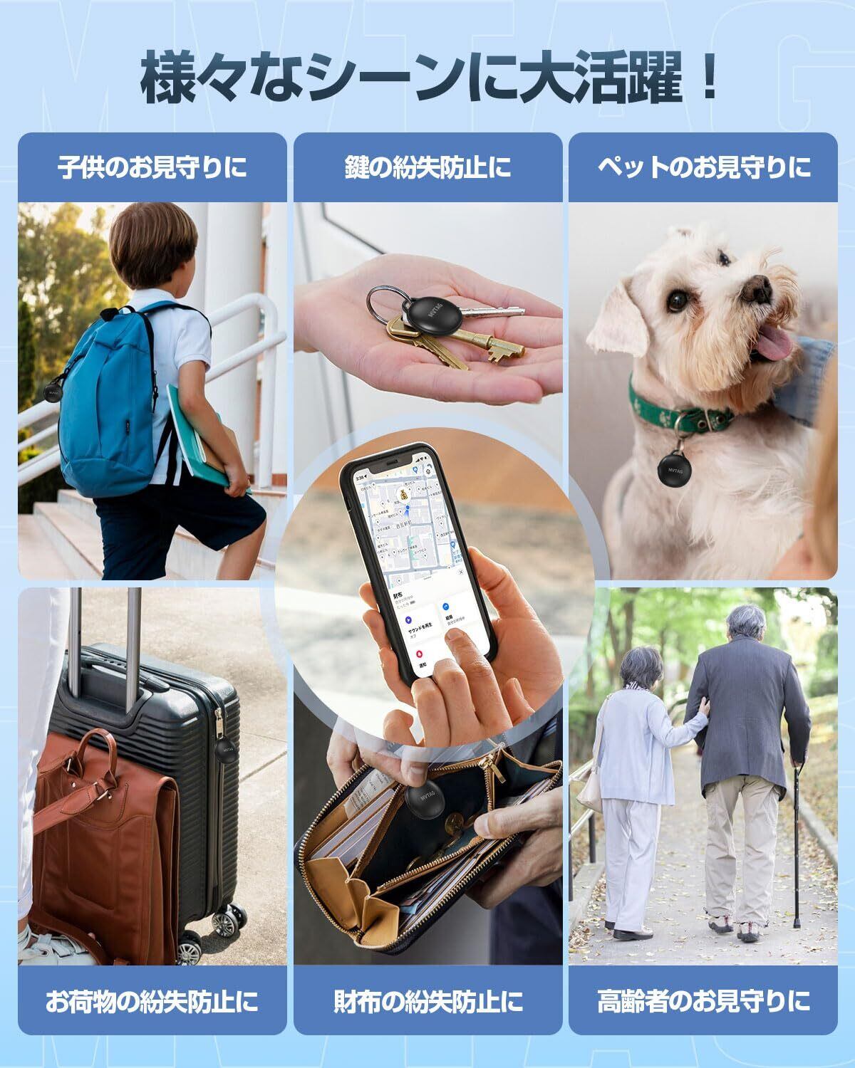 【様々なとこに使用可能】簡単な操作で、小さなお子様からご年配の方まで誰でもご利用いただけます。スマートトラッカーはキー、バッグ、財布、カバン、荷物、ペットの首輪、子供のランドセル、盗難防止など多様な用途に適しています。紛失防止だけでなく、高齢者介護において見守りツールとしても活用できます。お子様や物忘れがちな方、認知症のあるご高齢者に大変便利です。家族や友人への素晴らしいプレゼントにもなります。【パッケージ内容】紛失防止タグ*1、日本語取扱説明書*1、キーリング*1、ストラップ*1、三角オープナー*1。【1年間安心】お客様に信頼される会社となることを目標として日々努力しておりますので、使用中、製品の使用について何か不明なところが御座いましたら、ご心配なさらないで注文履歴より弊店までご連絡ください。必ず最善を尽くし、サービスにご対応いたします。連絡方法:「アカウントサービス」>「注文履歴」>「販売元」>「質問する」
