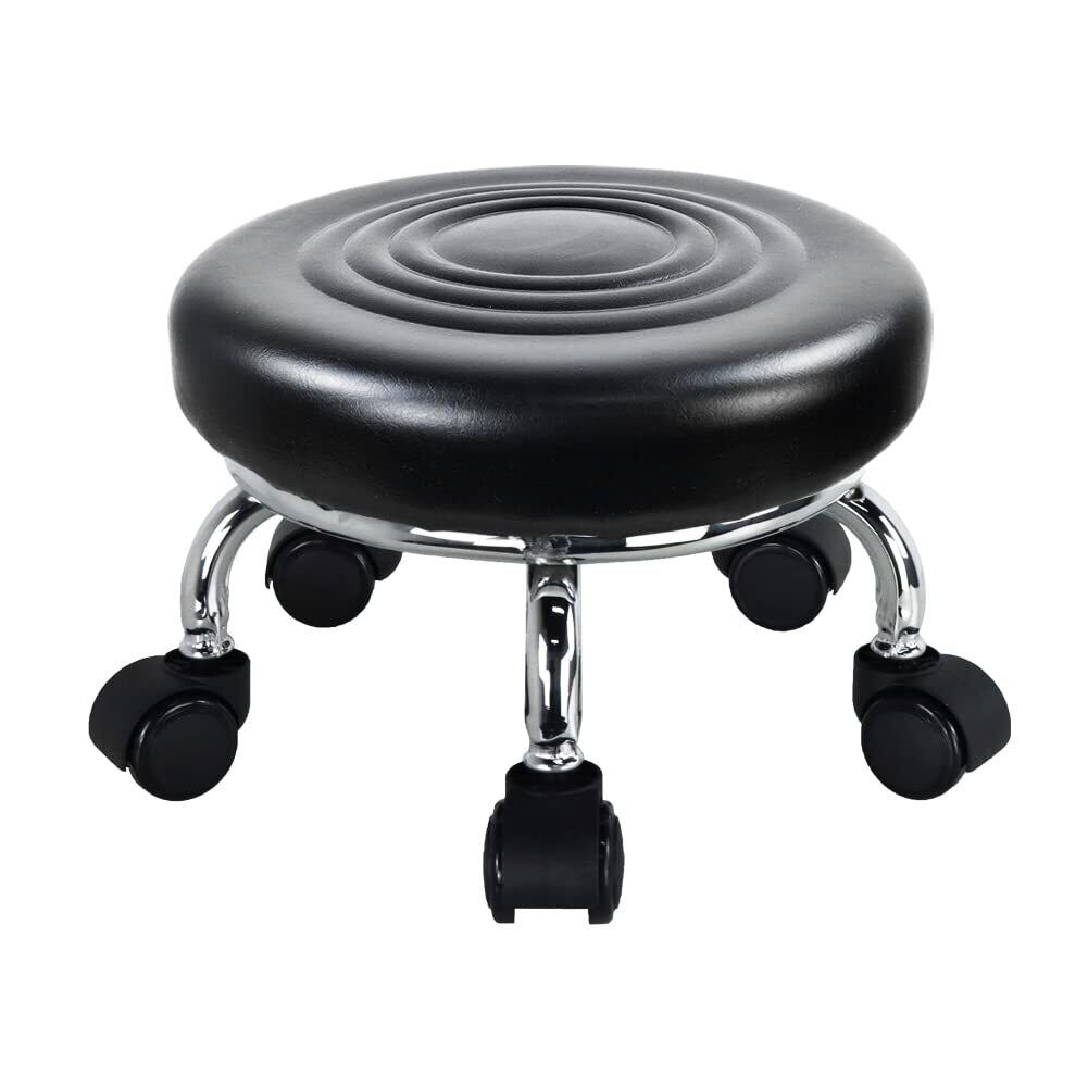 WKWKER 現代風 口一スツール 車輪付き PU皮 円形転動腰掛け 360°回転 小腰掛け万方向車輪付き腰掛け低腰掛け高さ21.3 cm家居車庫店舗に適している(黒)