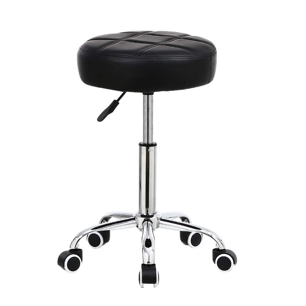 KKTONER 丸回転昇降スツール キャスター付き 製図作業学習バー椅子 オフィスチェア カウンターチェア 作業椅子 PUレザー M サイズ ブラック(黒)
