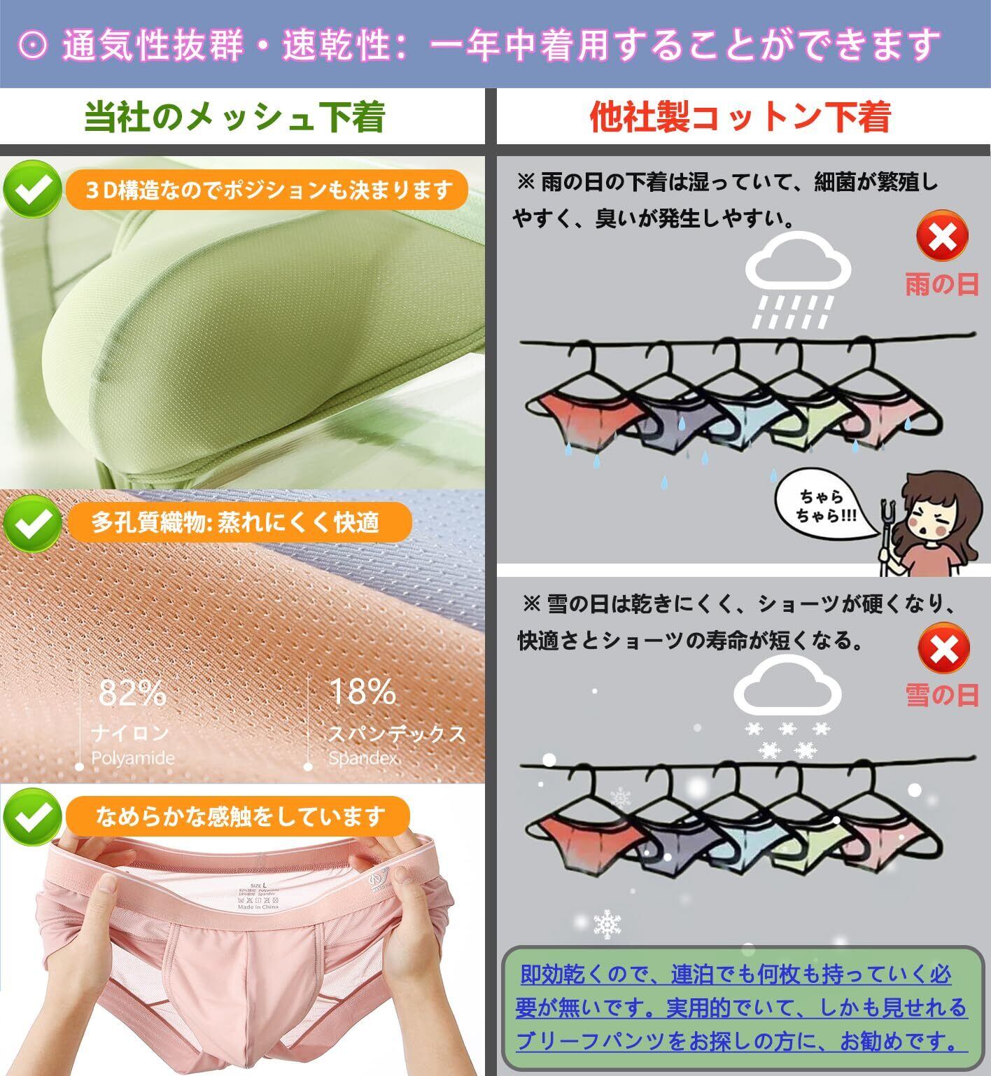 1.【材質特性】新型の氷の糸の材質、優れた通気性、弾力性が抜群、糸が滑り,肌にしっかりフィットする構造で素材感、肌さわりも良 いです、一日中快適な履き心地。二重突起部強化、着っている時とても気持ちいいです、どんなの日に も必要なものです。超薄、超軽量で、パンツを履いていない感じです。