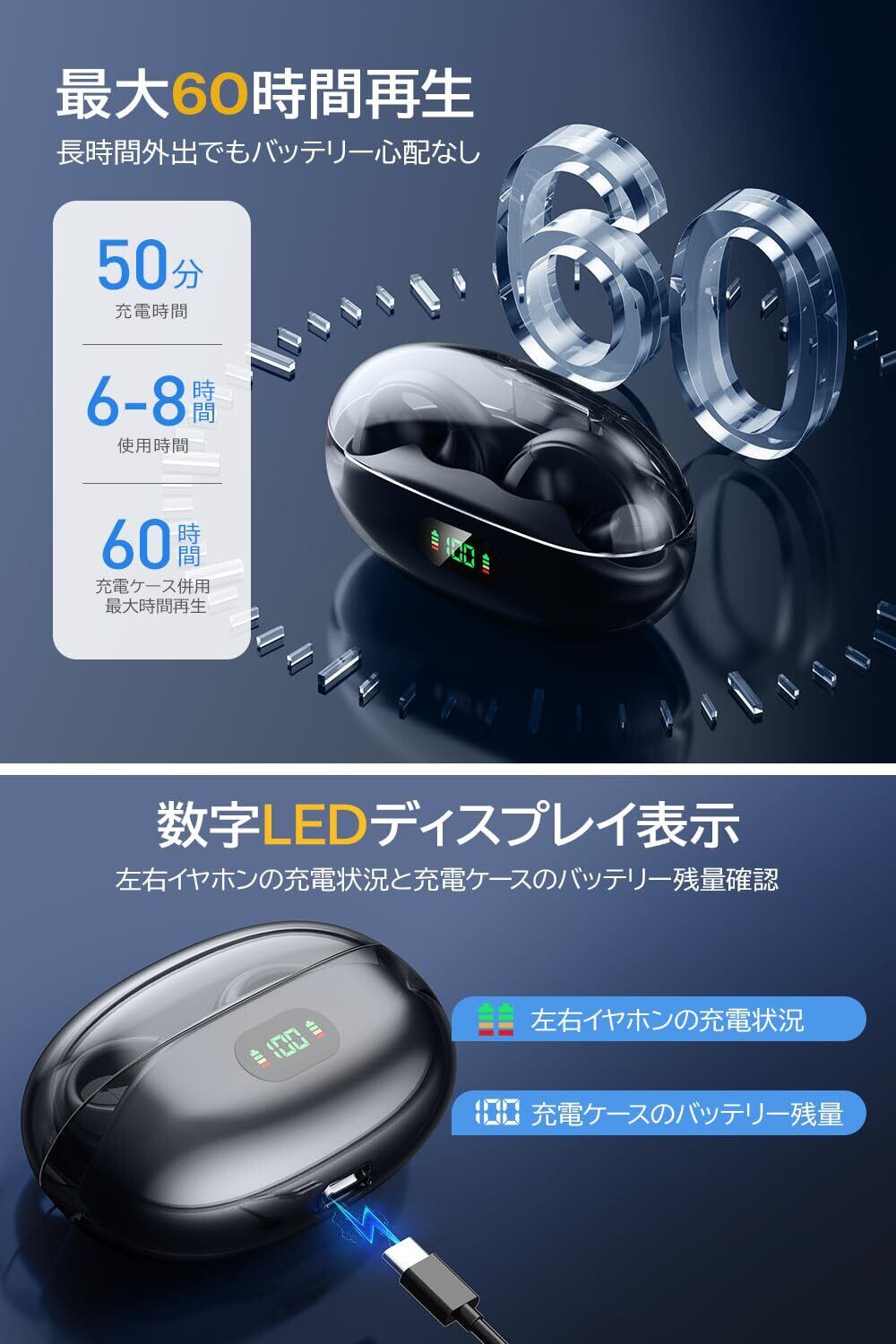 イヤホン bluetooth ワイヤレスイヤホン 【2025進化 骨伝導の革新 イヤーカフイヤホン】 最先端Bluetooth5.4技術 オープンイヤーイヤホン 耳挟み型 60時間再生 通話ノイズキャンセリング Hi-Fi音質 AAC/SBCに対応 ブルートゥースイヤホン 自動ペアリング 音漏れ抑制 高感度ボタン操作 IPX7防水 Type-C充電 通勤/運動 技適認証済