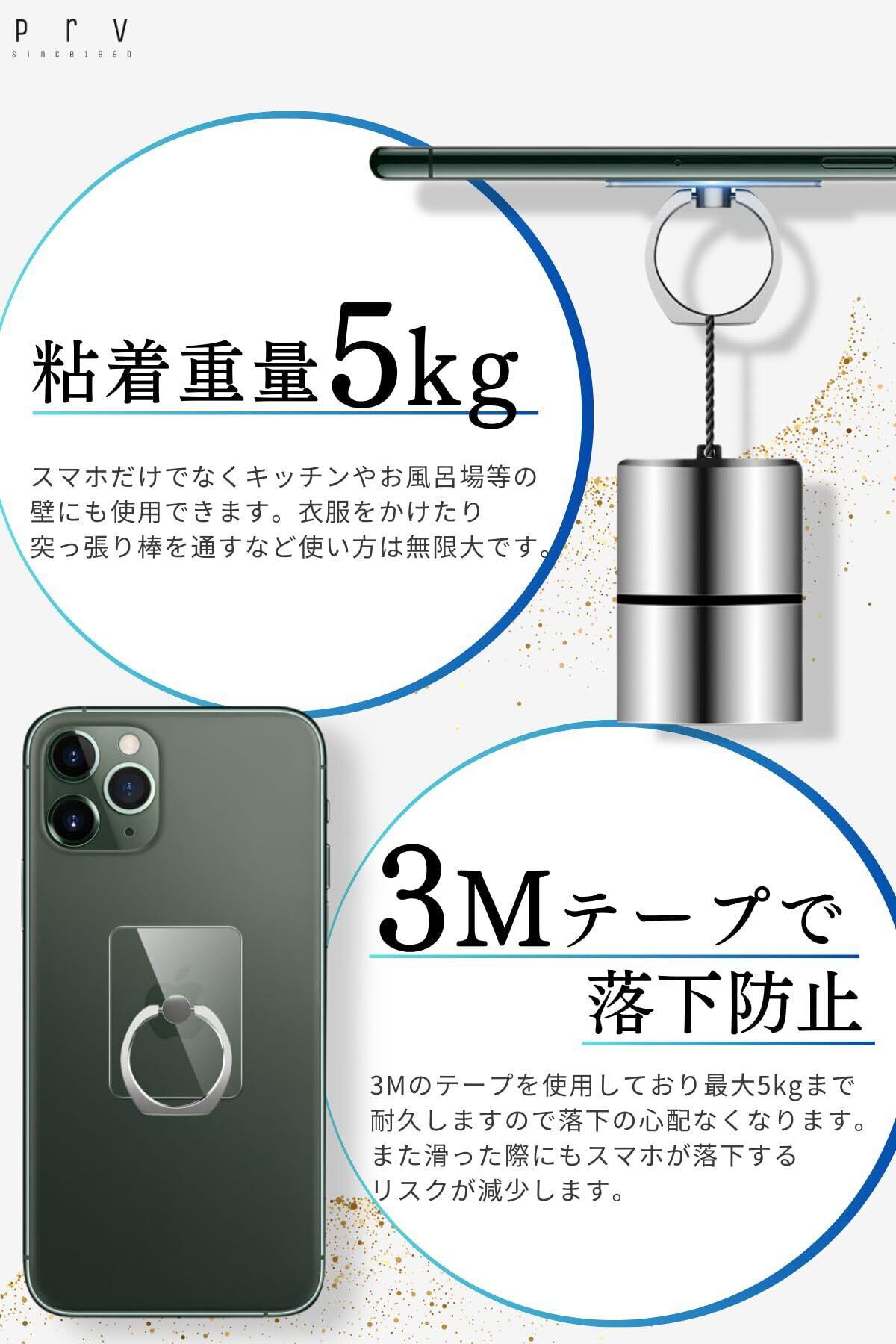 Prv【 雑誌掲載商品! 粘着重量5kg スマホリング クリア 】 粘着力最強 3Mテープ バンカーリング 緩くなりにくい リング強度最強 透明 薄型 ホールドリング 落下防止リング スタンド機能 タブレットリング 360回転 車 お風呂のフックにも使用可能 使い方は無限大 強力粘着テープ付き (スクエア/シルバー)