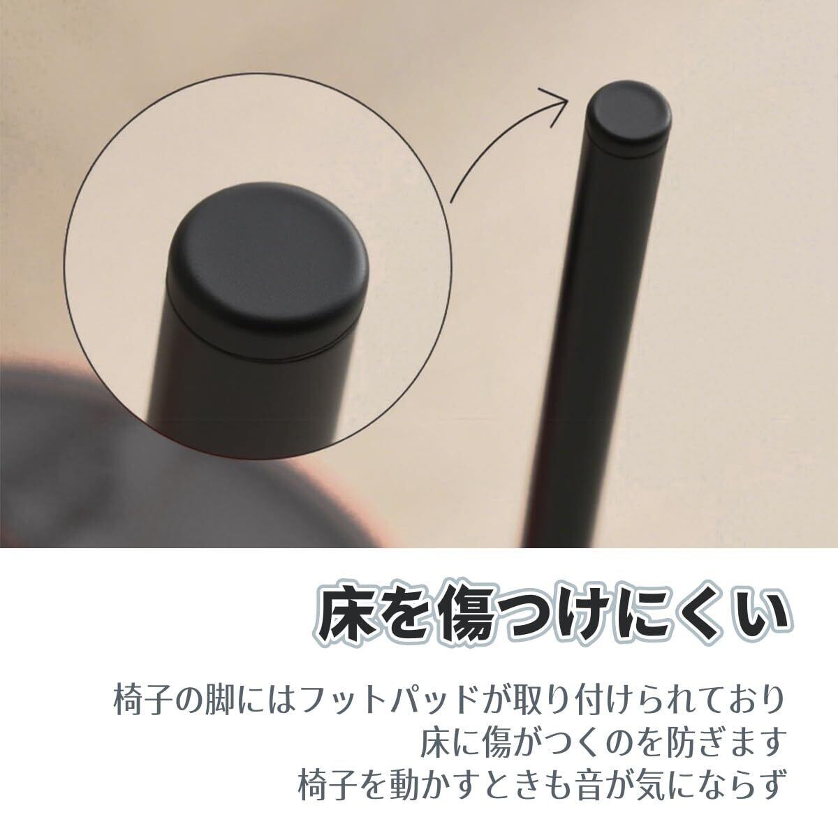 【床を傷つけにくい】椅子の脚にはフットパッドが取り付けられており、床に傷がつくのを防ぎます。滑りにくい設計なので、椅子を動かすときも音が気にならず、静かな環境で使用できます。