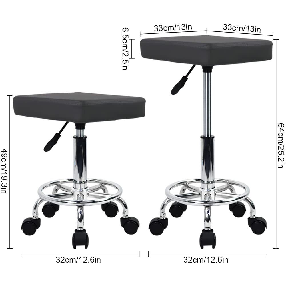 WKWKER スクエアシートの PUレザー 高さ調節可能なスイベルスツール 丸キャスター昇降スツール 回転椅子 ウンター オフィス サロン 事務所 ルーム や家に (グレー)