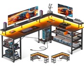 【コンセント付きデスク・ゲームと仕事両立】パソコンデスクとしてはもちろん、ゲーミングデスクとしても使用できるおしゃれなL字デスク。机には、2つのACコンセントとUSB ポート付きで、パソコンやスマホなどの充電ができて超便利です。また、ラックは間取りや利き手に合わせて左右付け替え可能。
