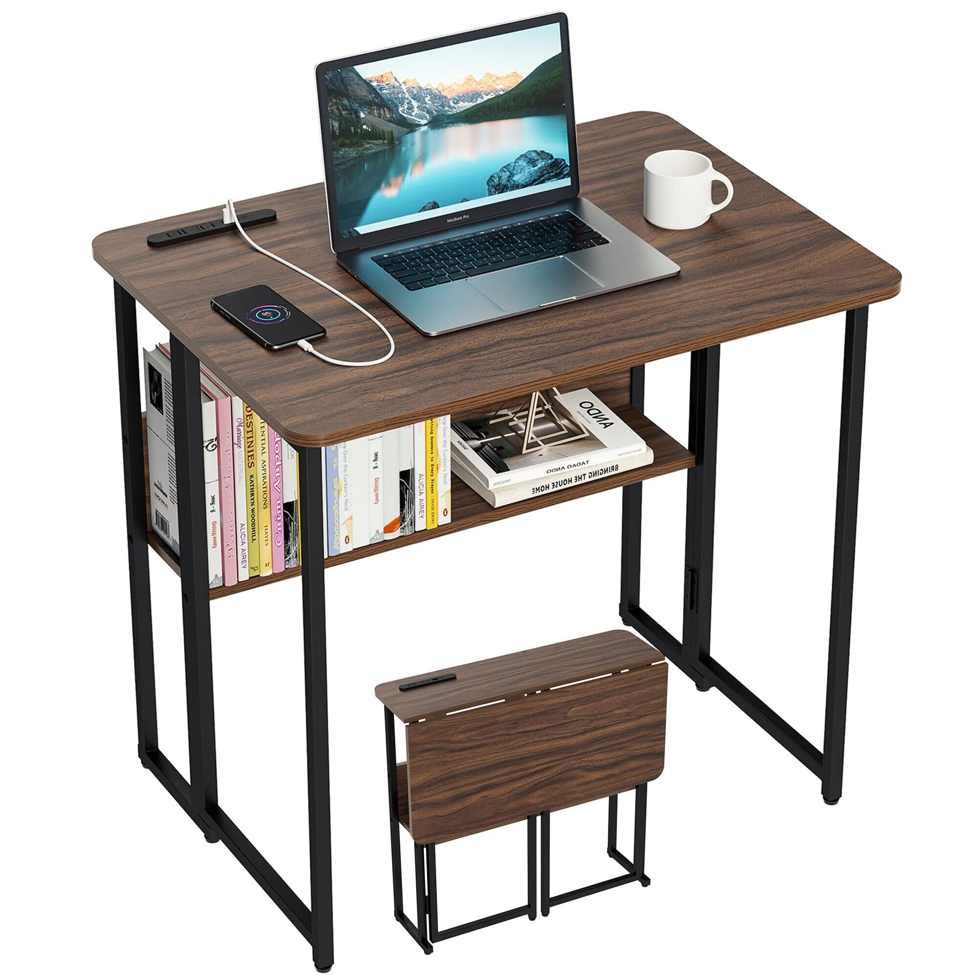 折りたたみデスク 多機能 折りたたみ テーブル 省スペース机 折り畳みコンパクデスク (80cm, クルミ)