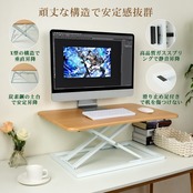 【デザイン性と実用性両立】お洒落な木目調化粧板の天板がどんなインテリアにも調和します。SHUWEI卓上スタンディングデスクは1.5cmの厚めの天板は撥水加工を施しました。四つ角、上部面角部は全て丸みを帯びさせ、体に近い正面側も使いやすいように円弧デザインを付けています。