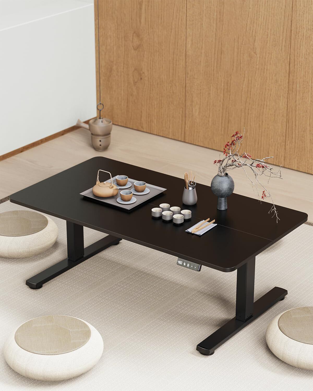 【床座スタイルにも対応!ロースタイル昇降範囲モデル】Xyndyxのロータイプモデルは、高さ48〜75cmの範囲で調整できるため、座布団・座椅子・ローソファなど床座スタイルにぴったり。正座やあぐら、または低めの椅子を使った姿勢でも無理なく作業できます。お子様の学習机としても最適で、成長に合わせた高さ調節が可能。和室やリビングでも自然に馴染む、柔軟な使い方が魅力です。