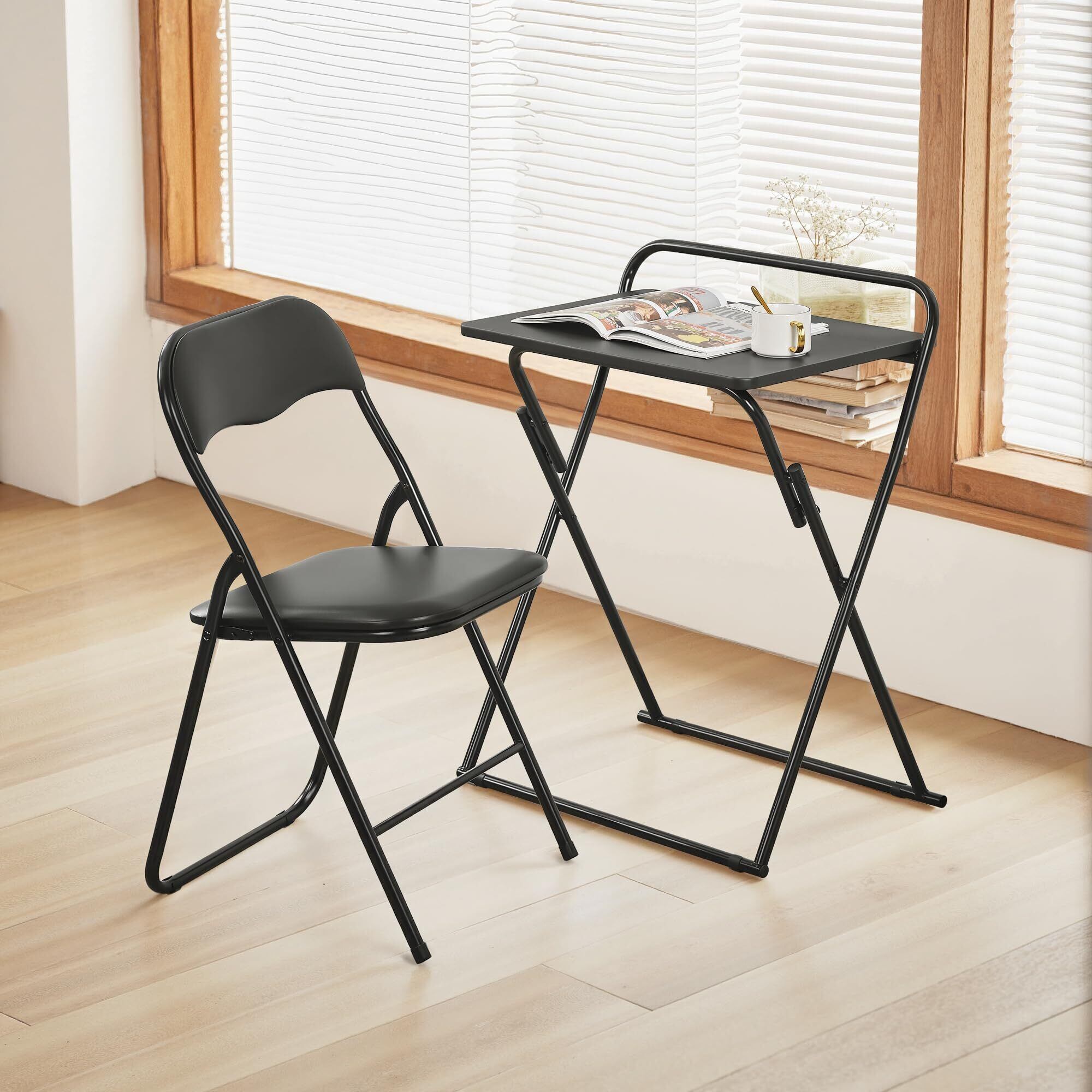【新着商品】VECELO 折りたたみ テーブル 椅子 セット 一人用 机 コンパクト 幅60×奥行42×高さ77cm 折りたたみ デスク チェア セット 作業机 study table and chair set 簡易机 ミシン台 テーブルチェア ブラック