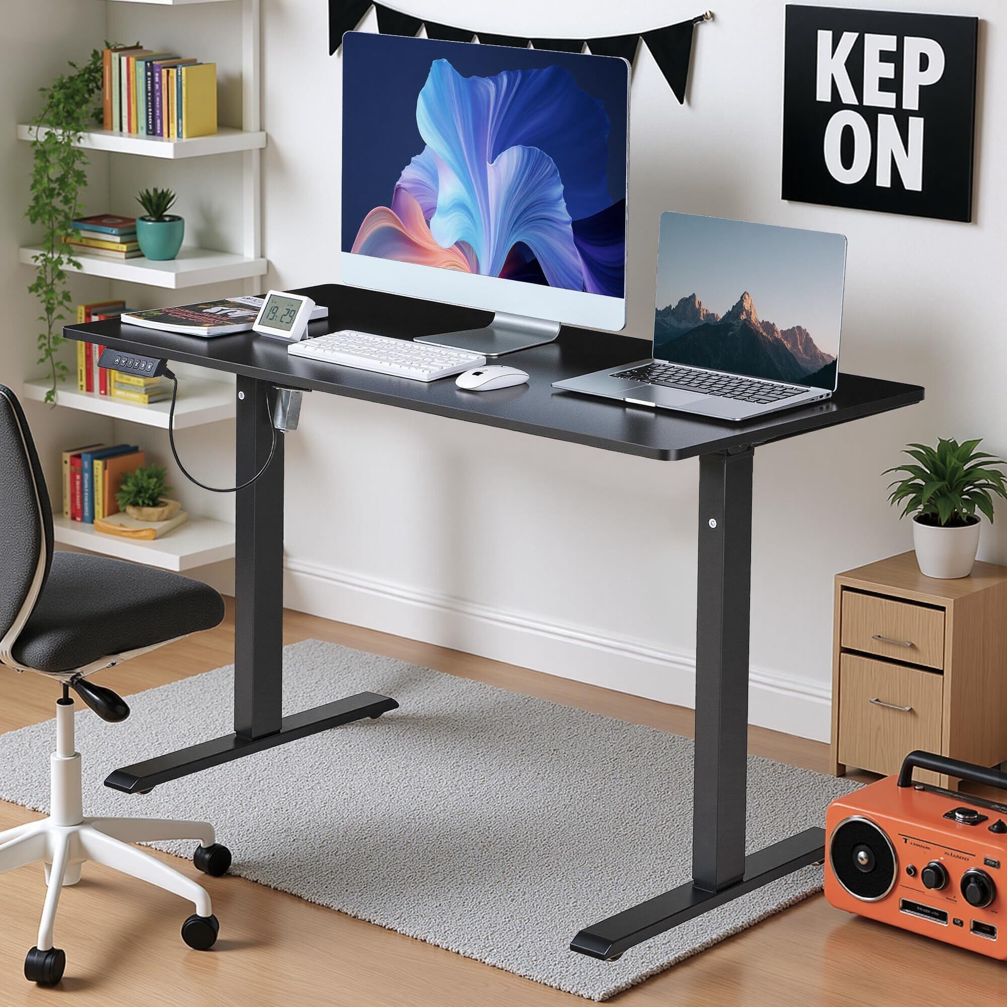 【在庫セール】VECELO 昇降式デスク 電動 スタンディングデスク オフィスワークテーブル 幅120×奥行60×高さ70.5-113cm 高さメモリー機能 テレワーク オフィスデスク 在宅ワーク シンプル ブラック | SmartLiving+