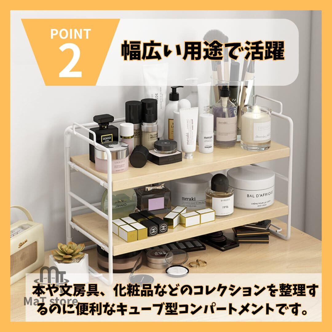 ■【多用途に使える収納力!】2段構造で、書籍や文房具、ひと目でわかる化粧品など、さまざまなアイテムを収納できます。上段には、すぐ取り出したいものを、下段にはより大きな物を収納できるので、デスク周りをクリーンに保ちます✨。