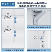 【可動棚】2つの上下に可動棚があり、棚の高さは保管している物品に応じて調整することができ、より使いやすいです。重要書類やコピー用紙などの重量物を保存することができます。ストレージスペースを無駄にしません。