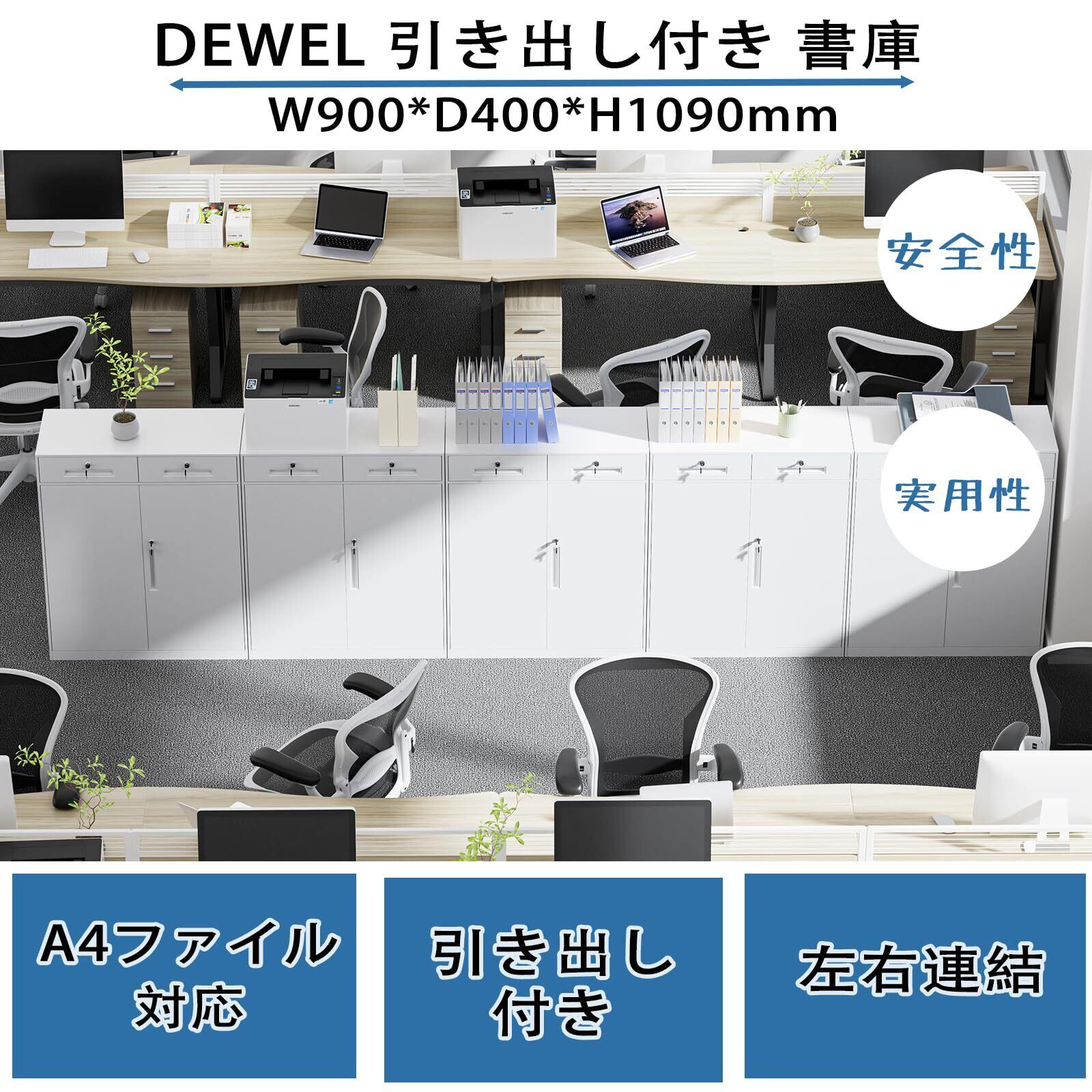 【人気商品】DEWEL ロッカー スチール書庫 幅900×奥行400×高さ1090mm 引き出し付き 両開きタイプ 鍵付き キャビネットスチールロッカー 3段 オフィス/事務所/更衣室/学校/業務用 A4対応 保管庫 収納 組み立て必要 日本語説明書付き 棚板可動 (ホワイト, 高さ110cm)