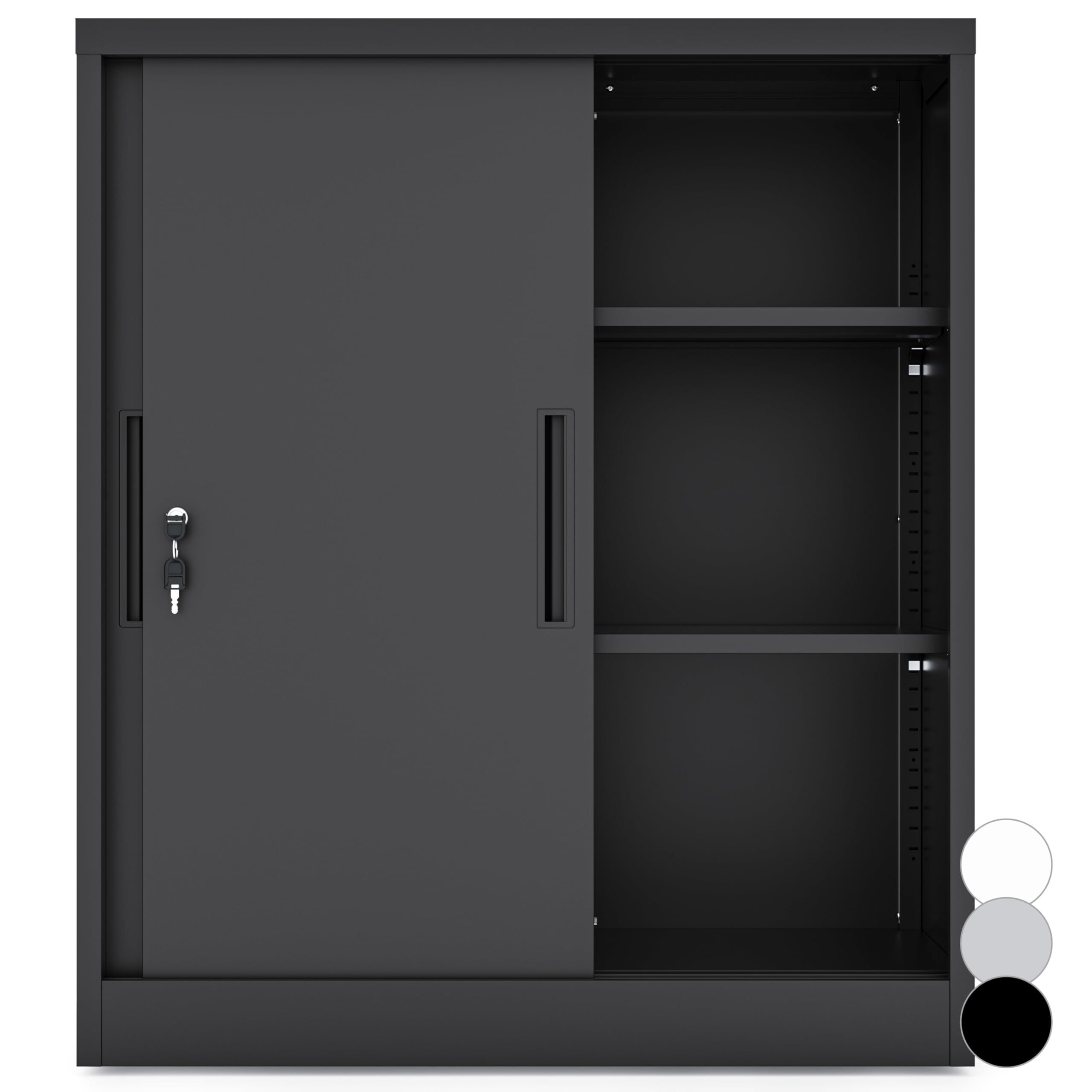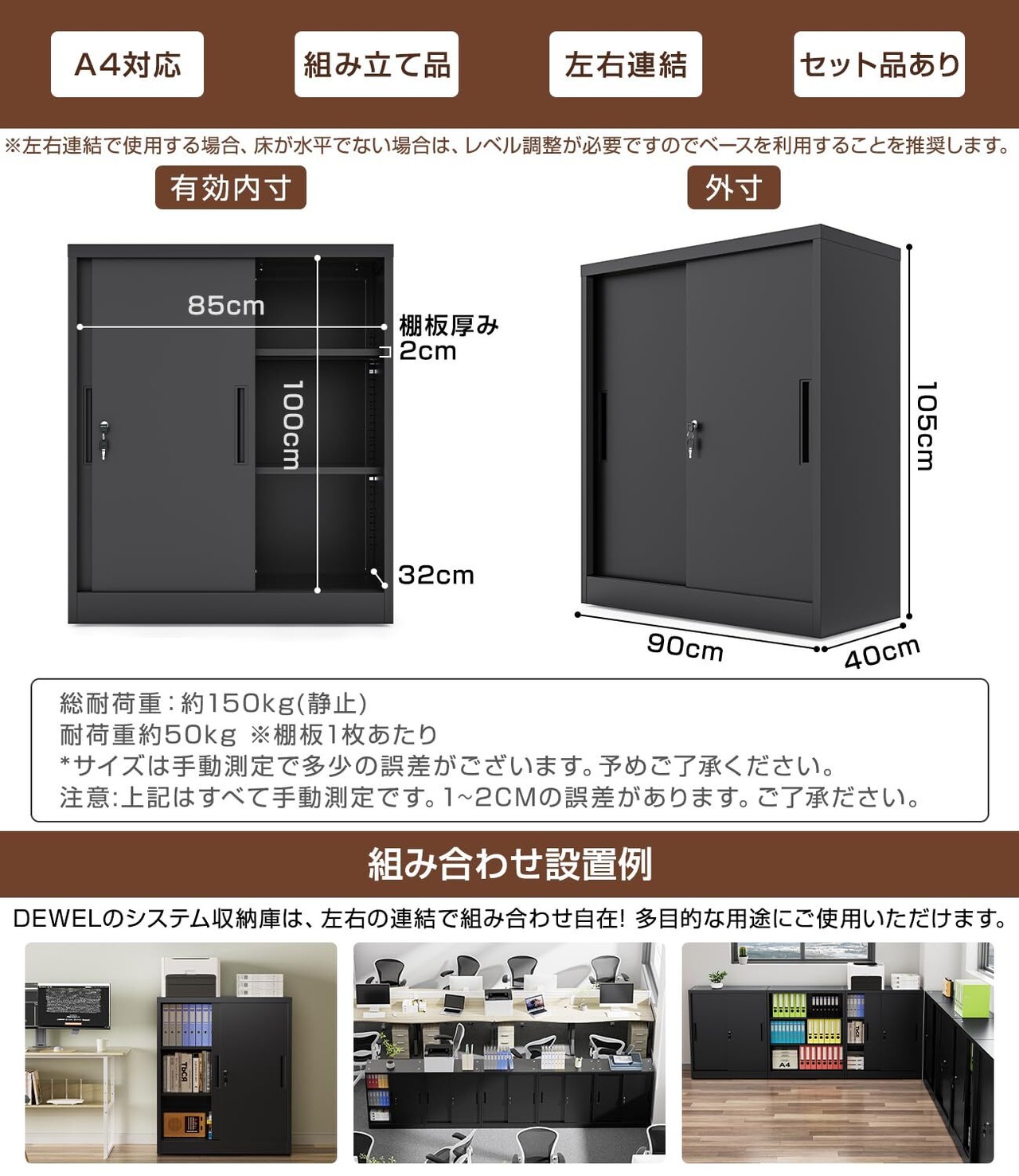 DEWEL ロッカー 引戸書庫 3段 引き違い書庫 システム収納庫 幅900×奥行400×高さ1050mm スチールキャビネット スペアキー付き 可動棚付き 書類棚 保管庫 オフィス 業務用 書類収納 A4対応 抗菌加工 ホワイト おしゃれ 法人、個人事業主様向け商品