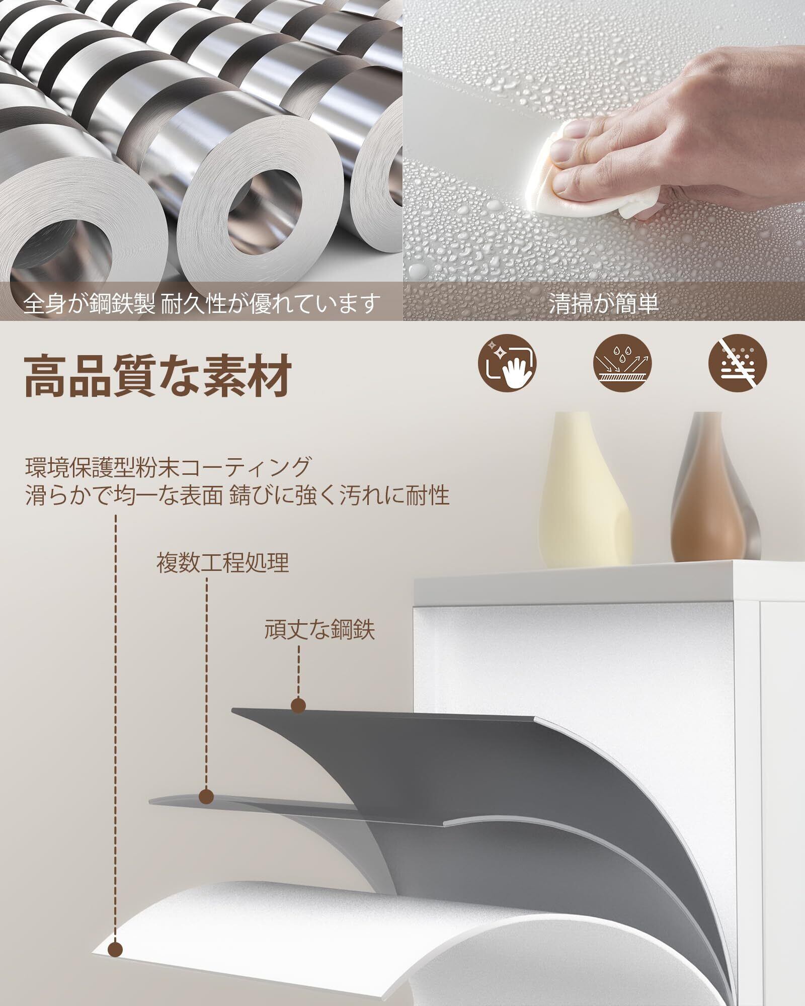 ■【高品質で耐久性抜群!】頑丈なスチール製の本体に、環境に優しい粉体塗装を施しています。これにより防錆・耐汚性に優れ、お手入れも簡単です。長期間にわたって安定した使用が可能で、木製キャビネットよりも耐久性が高い設計です✨。