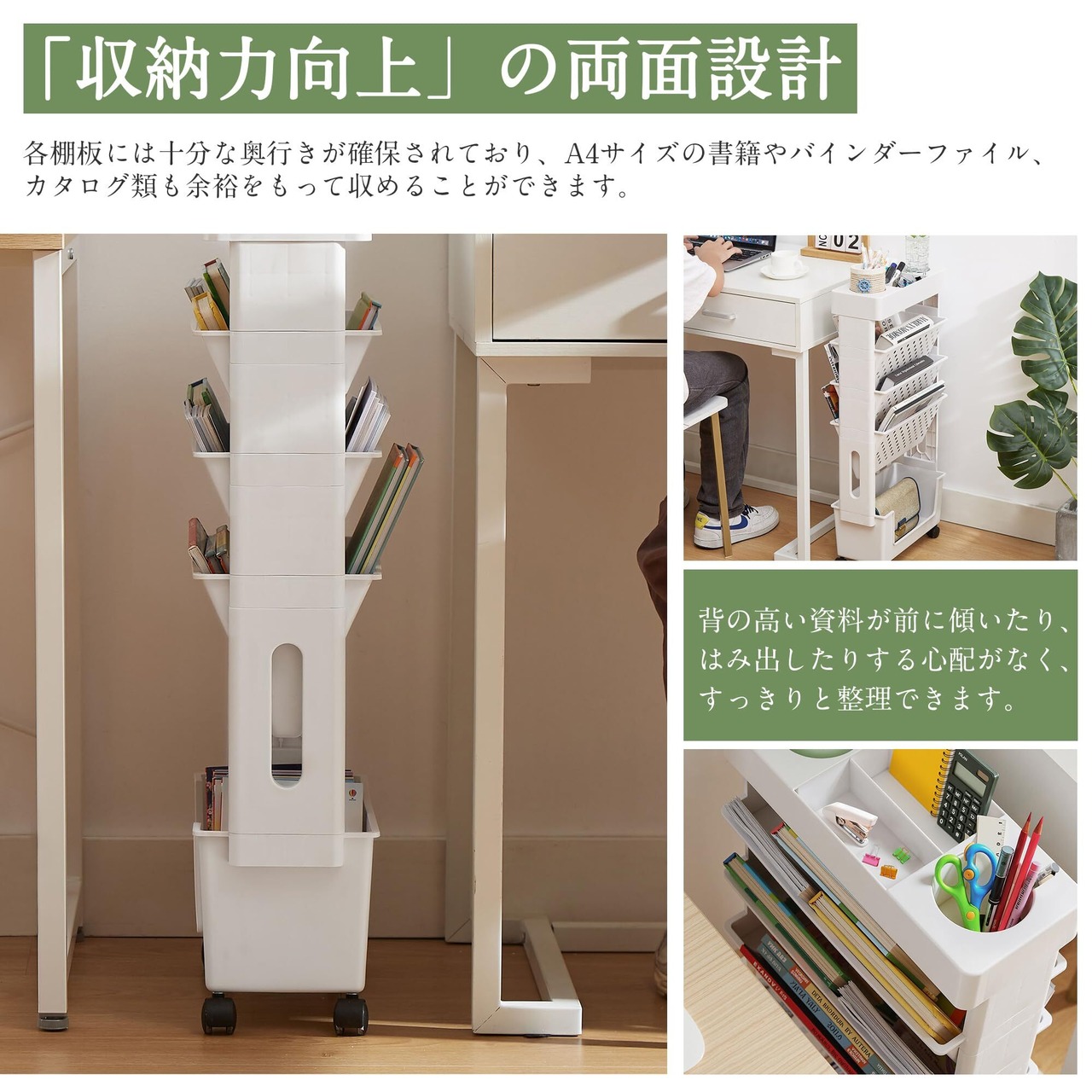 【様々な場合で活躍】このスリムな本棚はリビングルームやベッドルーム、キッチンなど室内で、 隙間を活用し、教科書などの本や雑貨をきれいに収納できます。それだけでなく、子供部屋、学生寝室、カ フェの中でも、このファイルワゴンに漫画、教科書、絵本、CD、雑誌や新聞などを置いて、楽に取り出して読めます。そして、オフィスの中で、ファイルワゴン、置物架やマガジンラックとしても活躍しています。
