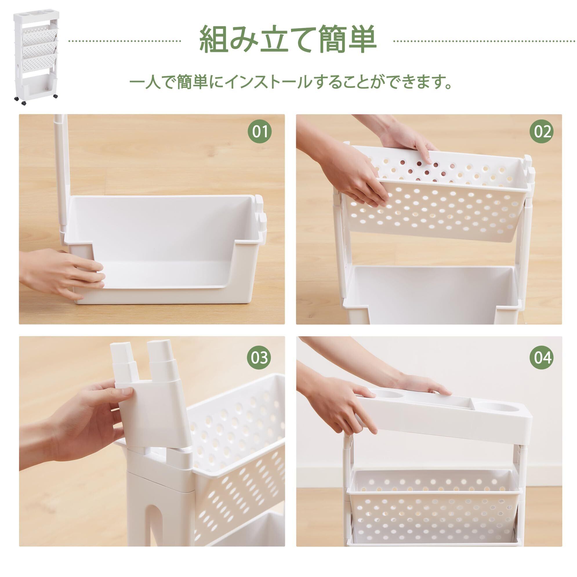 【おしゃれなデザイン・組み立て簡単】:スリムな本棚やおしゃれなファイルワゴンが欲しい方に適し、ホワイトの色と北欧式のデザインは、シンプルでモダンな雰囲気を演出します。そして、このスリムな本棚の組み立てはすごく簡単です。ツールなどが全然不要で、一人で5分以内にこのファイルワゴンが手軽に組み立てられます。そして、小のサイドワゴンは引っ越し時も、簡単にされる取り外されることができ、持ち運びやすいです。
