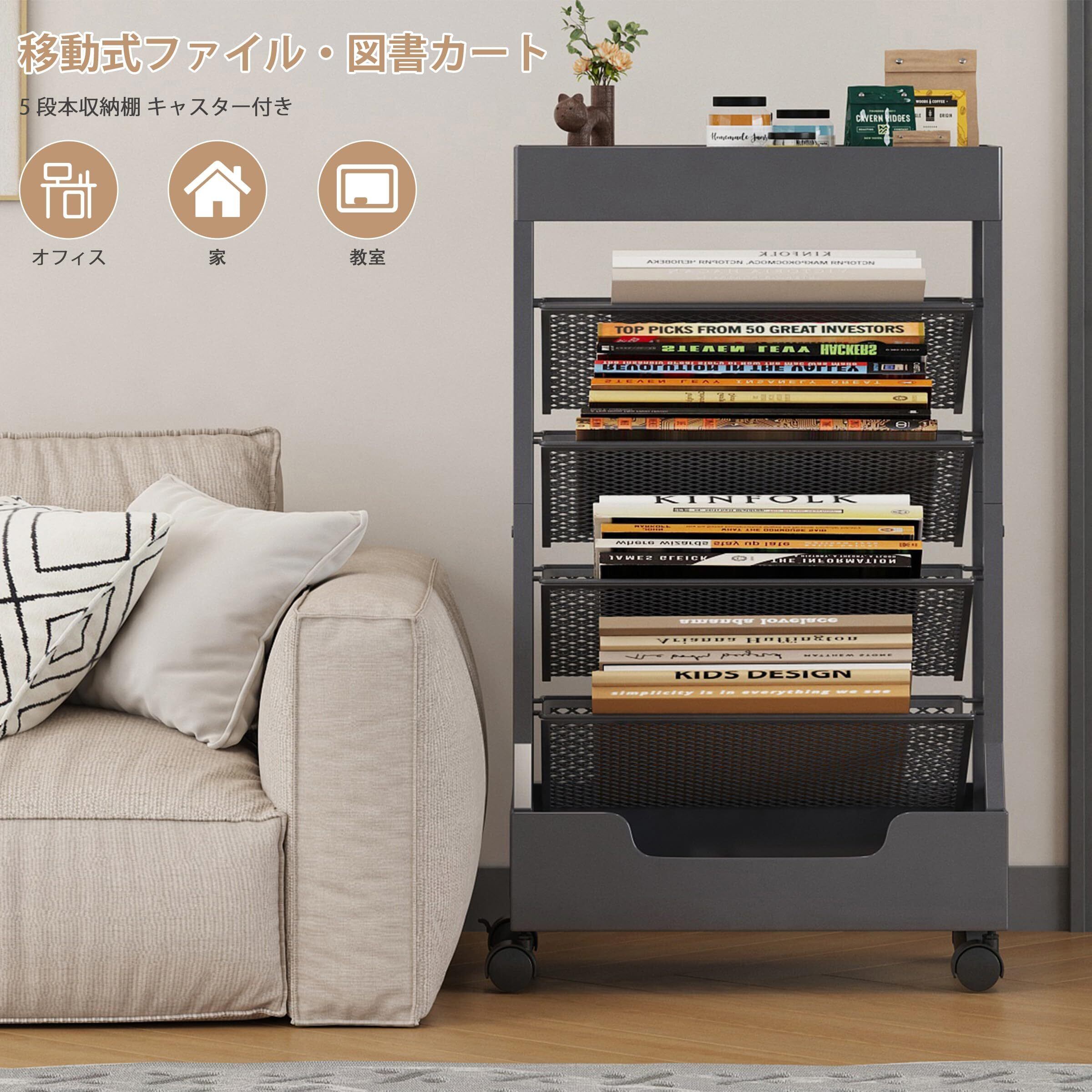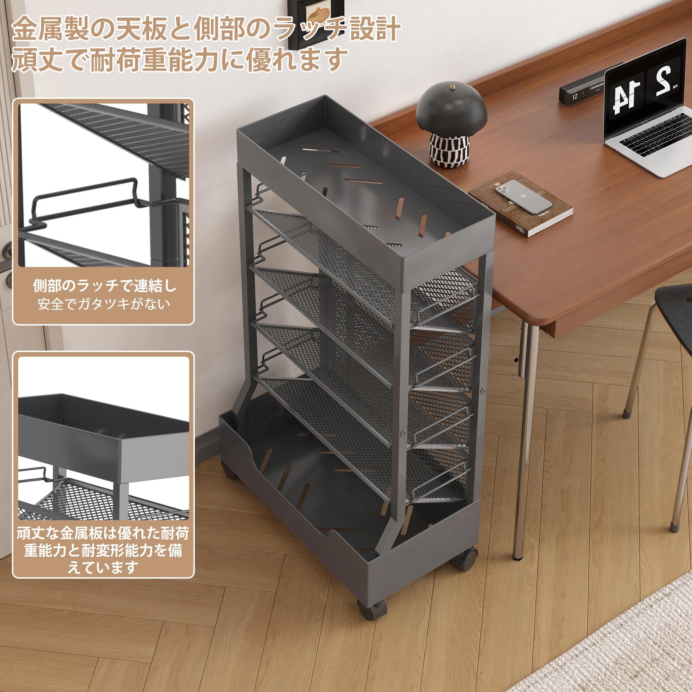 【新着商品】Ornesita ファイルラック ファイルワゴン 6段 本棚 書類棚 書類 A4収納 キャスター付き 大容量 斜め棚 組み立て簡単 教科書 雑誌/絵本/漫画収納 クリアファイル 子供部屋/教室収納棚(グレー 幅42×奥行22×高さ71cm) | SmartLiving+