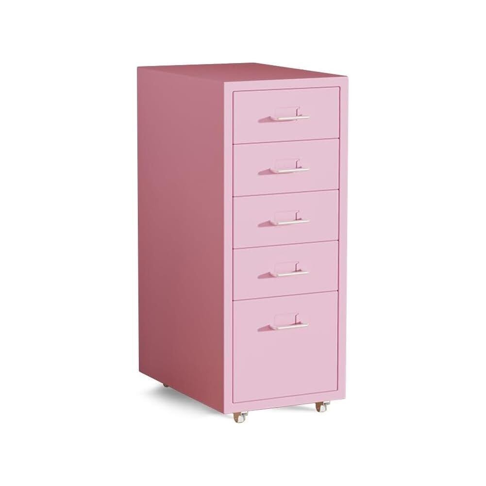 【在庫処分】Floralies デスクワゴン キャビネット スリム 5段 オフィスワゴン サイド 書類ケース A4対応 書類収納 オフィス キャビネット 縦型ファイルキャビネット 袖机 机下収納 キャスター付き 可動式 (ピンク, 5段(幅28×奥行41×高さ69cm)) | SmartLiving+