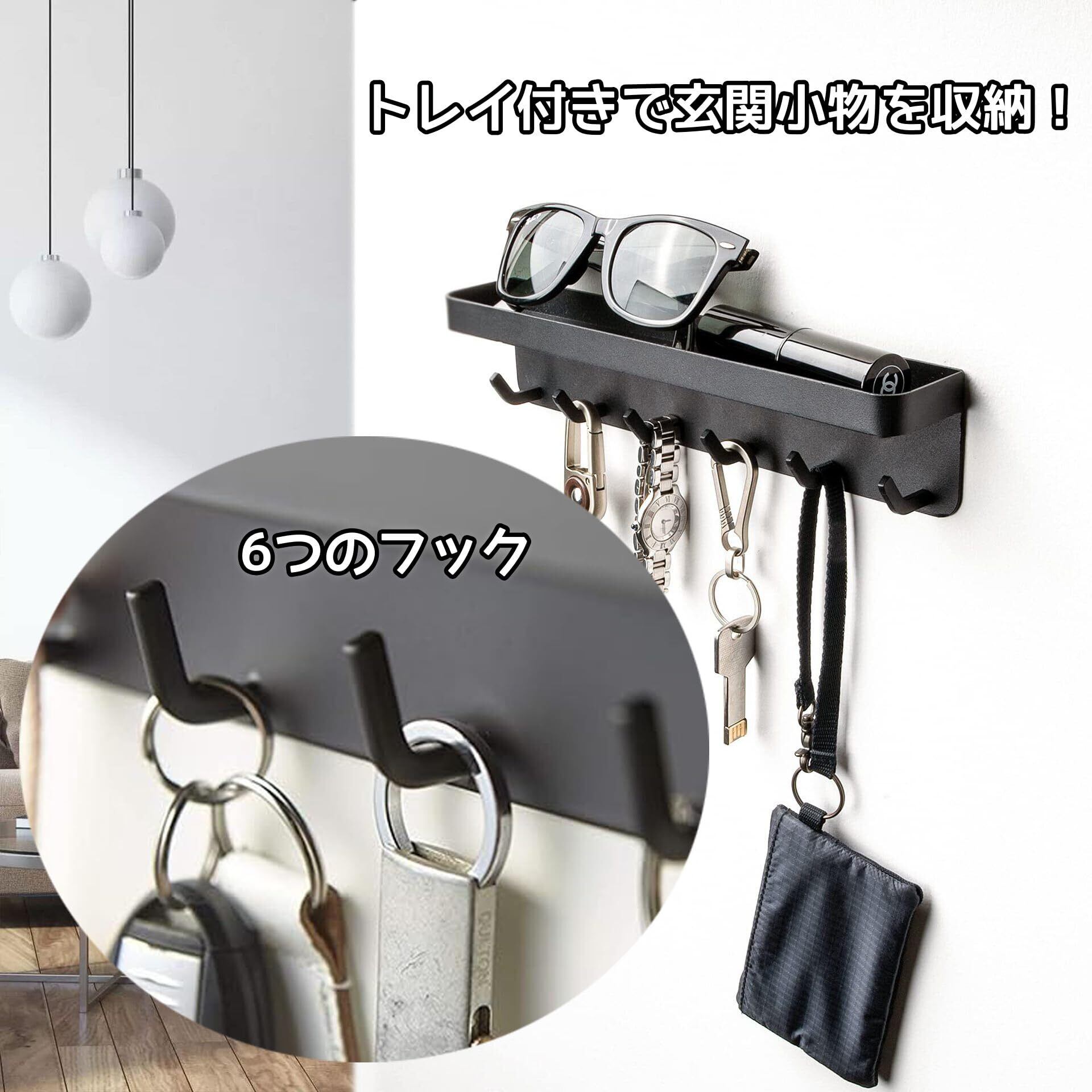 【新着商品】YWHWLX 壁掛けキーホルダー 6フック ステンレス キーフック ウォールハンガー キーフック & トレイ 壁掛け キーハンガー キーボックス 壁掛けフック 鍵置き 浴室 台所 玄関 鍵 印鑑 収納 トレイ付き | SmartLiving+