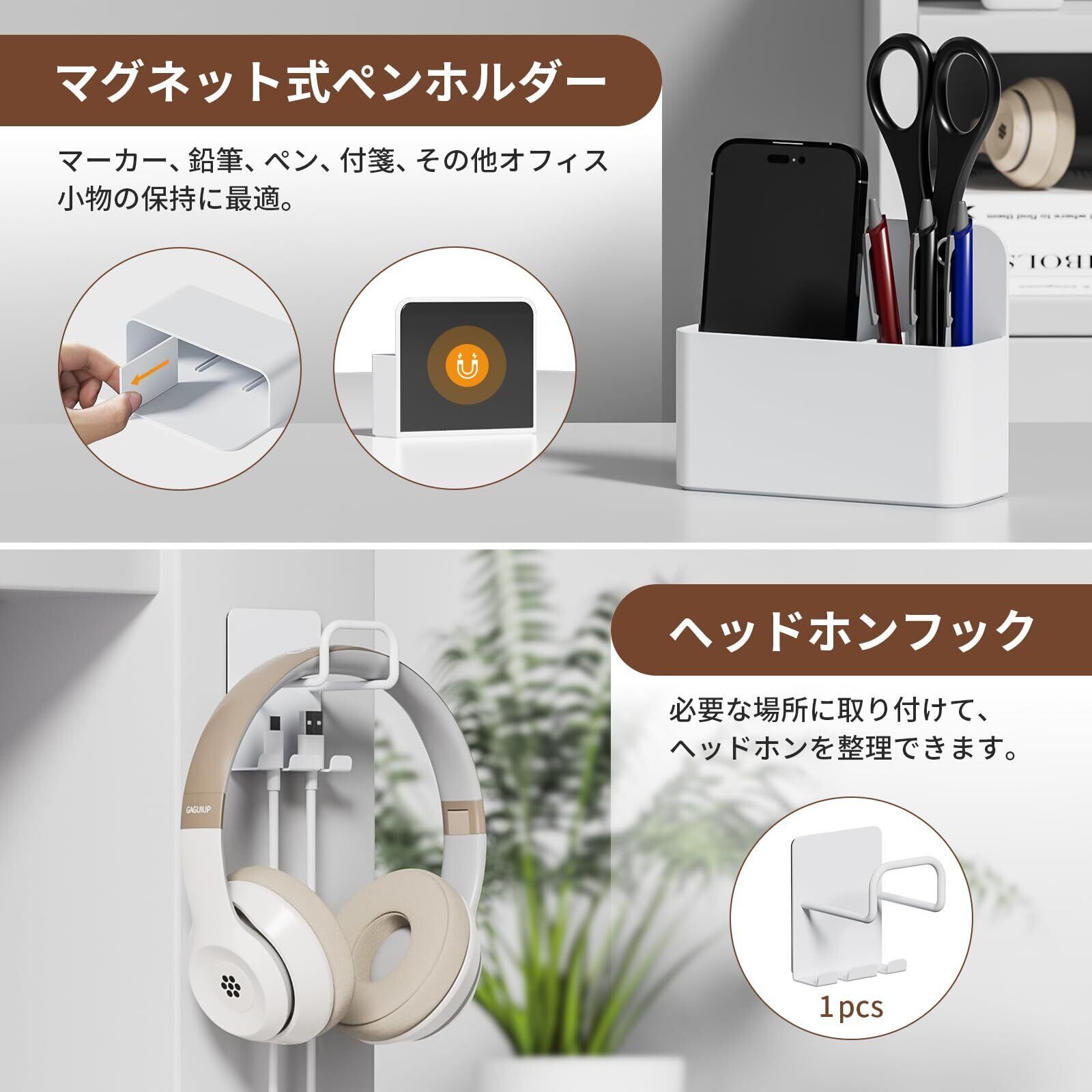 GAGUIUP デスクサイド 収納 ラック 小物入れ デスクサイドホルダー テーブルサイドポケット pcスタンド タブレット収納 穴あけ不要 省スペース ホワイト