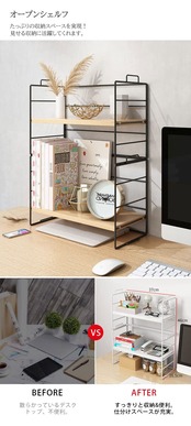 【数量限定】オープンラック 本棚 デスク収納 ラック 上置棚 シェルフ 収納ラック 棚 収納棚 北欧 机上ラック テーブルラック本 文房具 飾り 小物置き 整理 組立簡単 (棚板3枚, ウッド色棚板+白色フレーム) | SmartLiving+