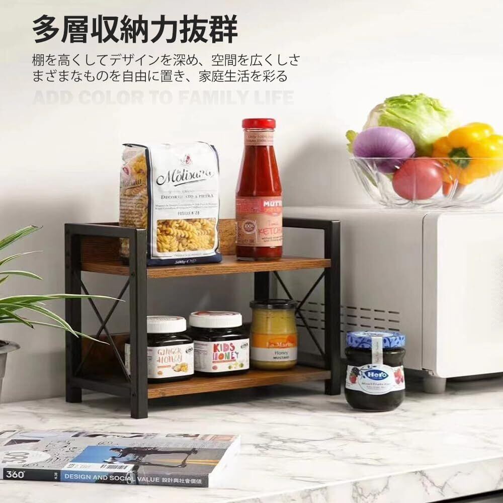 卓上 本棚 ラック デスク収納 棚板高さ調節可 2段 机上台 キッチン収納 調味料ラック ノート パソコン台 卓上 (復古, 幅33×奥行16×高さ26㎝)