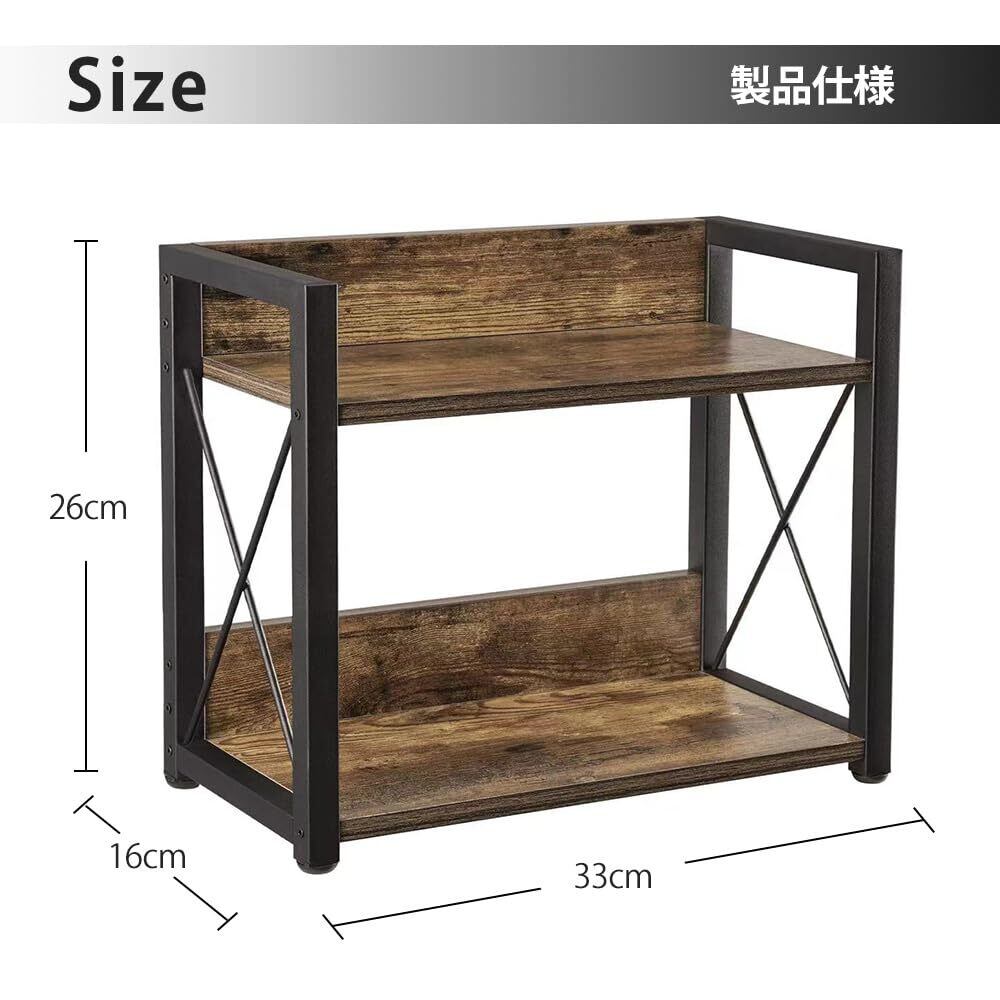【数量限定】卓上 本棚 ラック デスク収納 棚板高さ調節可 2段 机上台 キッチン収納 調味料ラック ノート パソコン台 卓上 (復古, 幅33×奥行16×高さ26㎝)