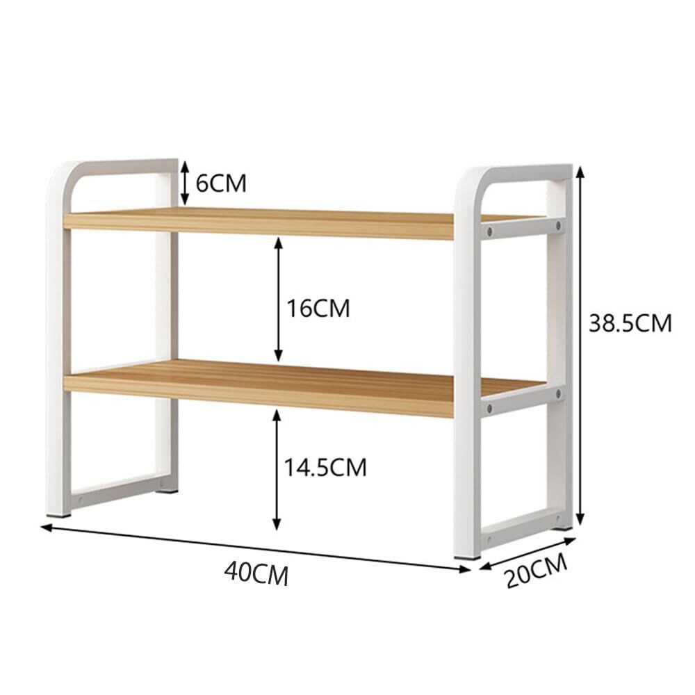 卓上 本棚 ラック デスク収納 棚板高さ調節可 2段 机上台 キッチン収納 調味料ラック ノート パソコン台 卓上 40cm (ウッド色棚板+白色フレーム)