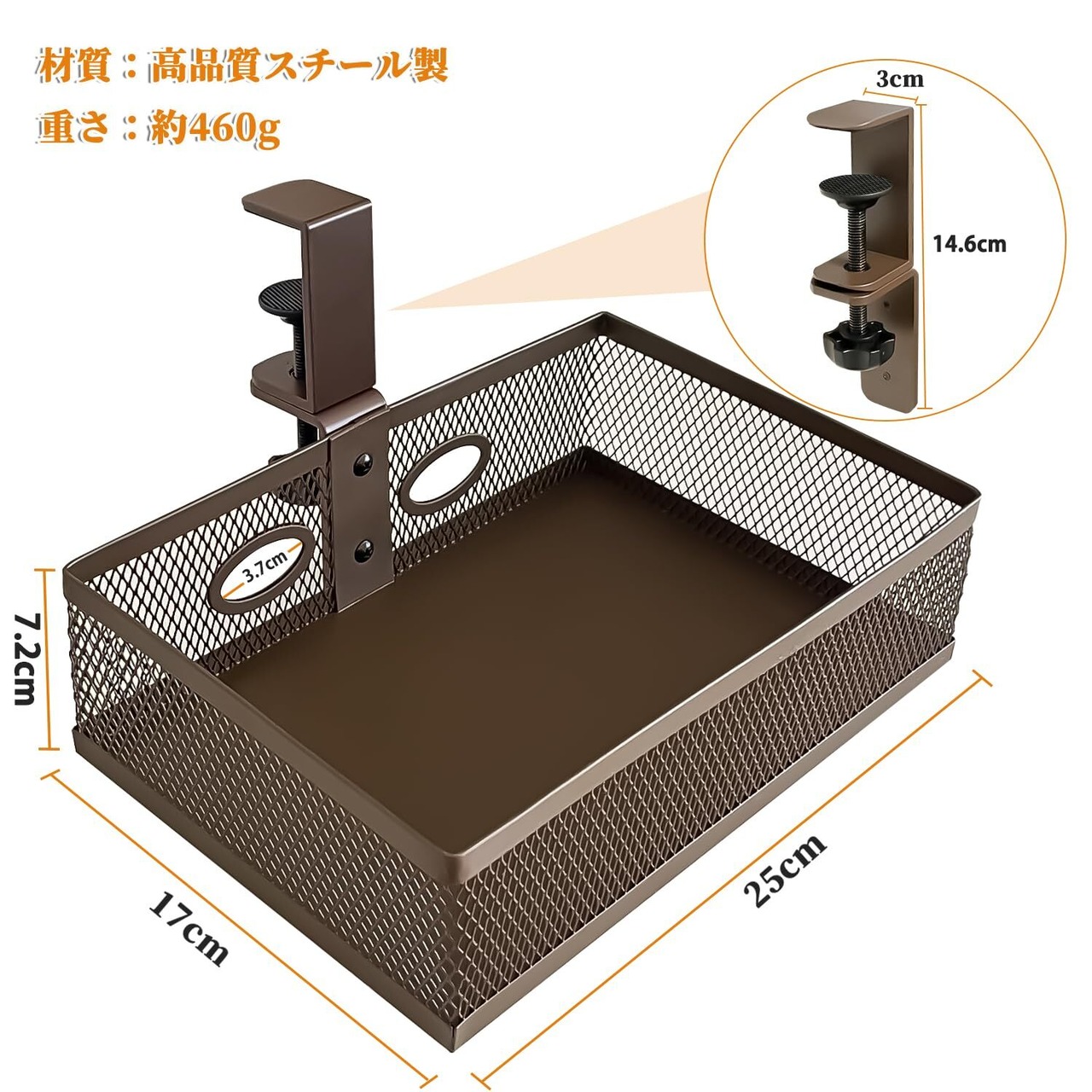 【在庫セール】【360度回転式】テーブル下収納ラック 後付け引き出し テーブル下収納 デスク 収納 机の下 収納 スペース活用 机下収納 デスク下収納 テーブル下収納 小物整理 スマホン/リモコン/文房具/カトラリー 便利 穴あけ不要 /天板1〜5.2cm設置可能/簡単な取り付け(メッシュ-ブラウン)