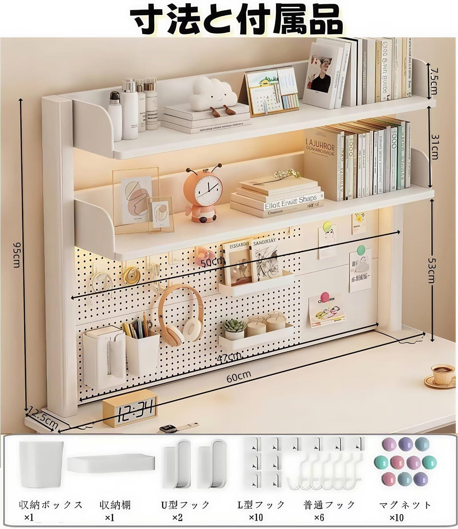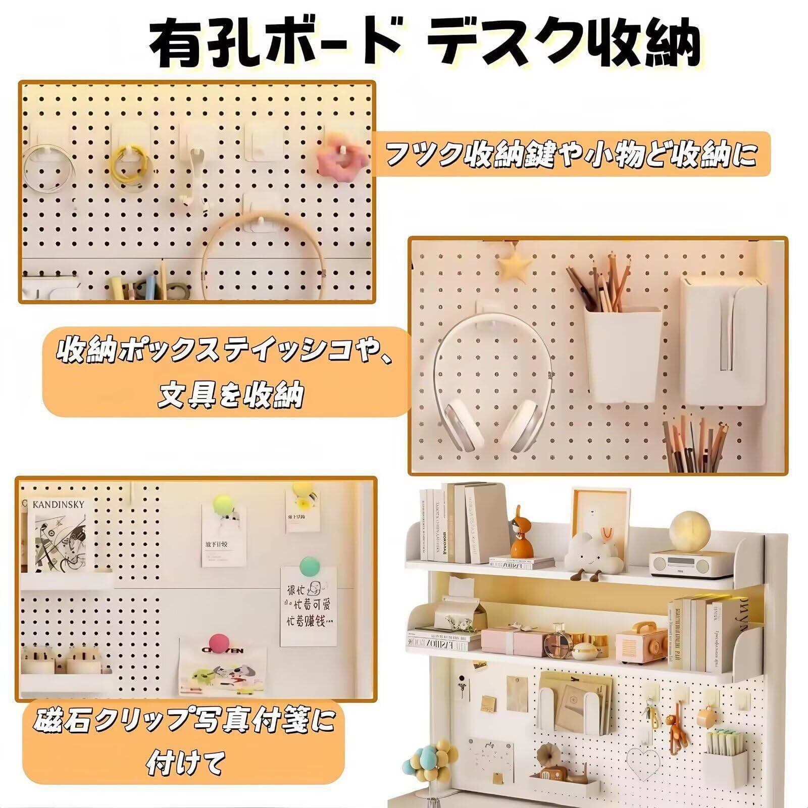 ■【多機能な収納スペース】本商品は、文房具や書籍、日用品などを整理整頓できる多機能ラックです。特に、有孔ボードは便利な収納場所を提供し、フックや小物入れを使用することで、さらに収納力を拡張できます!✨。