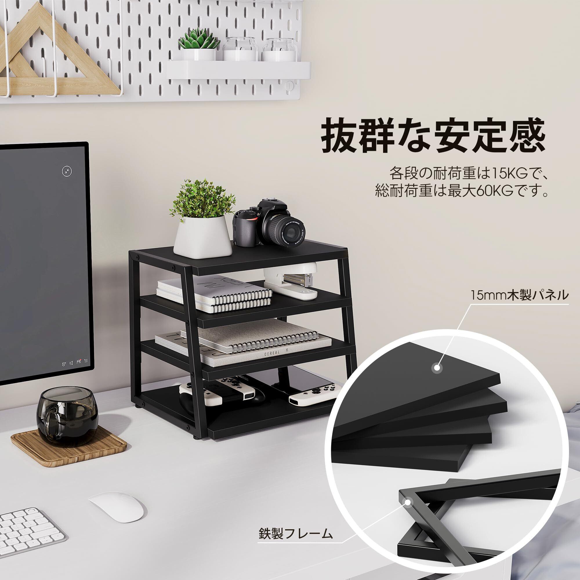 Fenge 卓上収納 卓上棚 デスクオーガナイザー デスク上置き棚 4段 大容量 オフィス収納ラック 机上ラック 幅37.2*奥行26.7*高さ30.7cm ブラックG05B4042B-JP
