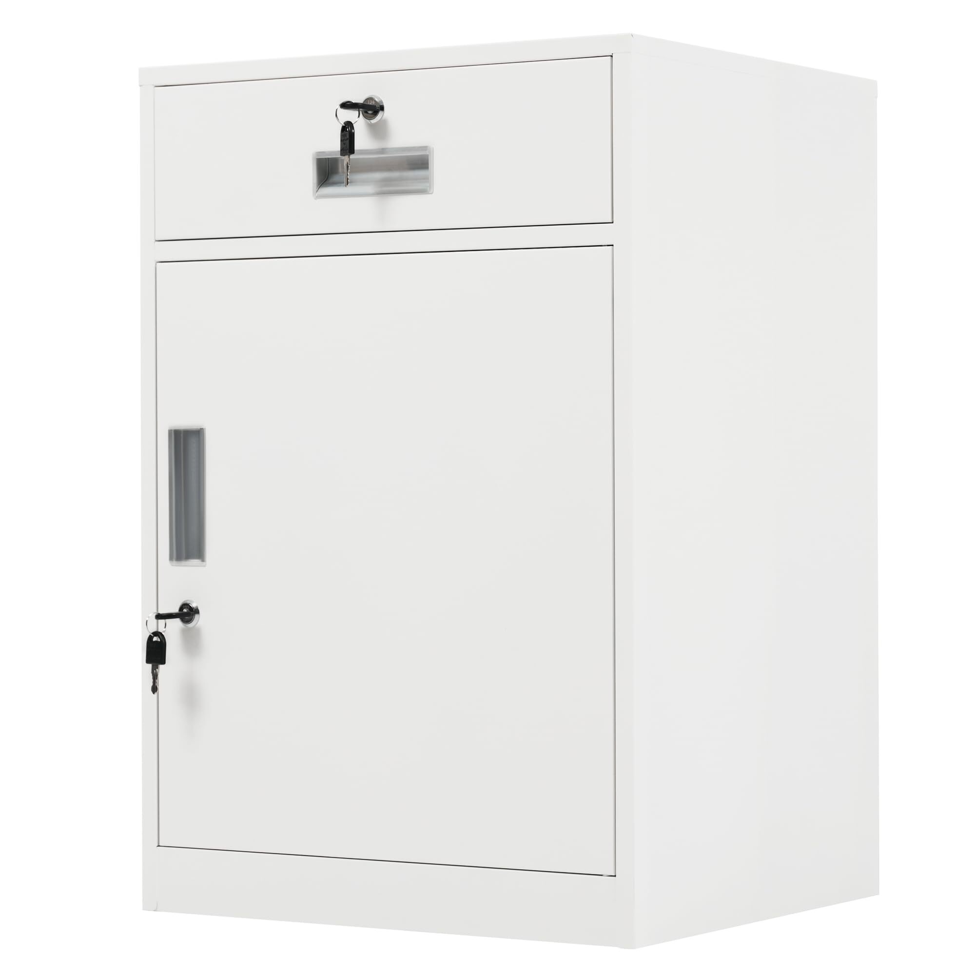 【収納に便利な可動棚*引き出し付】スチール書庫には、上下に調整できる可動棚があり、棚の高さは保管している物品に応じて調整することができ、より使いやすいです。収納物の高さにあわせて自由に調整することができます。優れた収納力で、A4サイズのファイルを横に並べても、積み重ねてもしっかり収納できます。ストレージスペースを無駄にしません。上の広々とした台面は印刷機や、本立て、ファイルなど置くことができます。上側に引き出しがあり、種類が多くなりがちな小物や機密書類・貴重品の保管に最適、非常に実用的です。