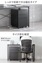 書類や小物が整理しやすい 3段 タイプの ワゴン です。