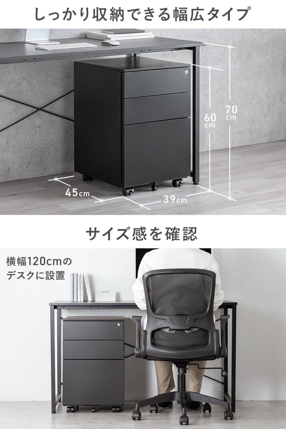 サンワダイレクト デスクワゴン スチール 幅30×奥行45×高さ60cm 完成品 3段 スリム 鍵付き 一括ロック キャスター付き キャビネット サイドワゴン ブラック 100-SNW029BK