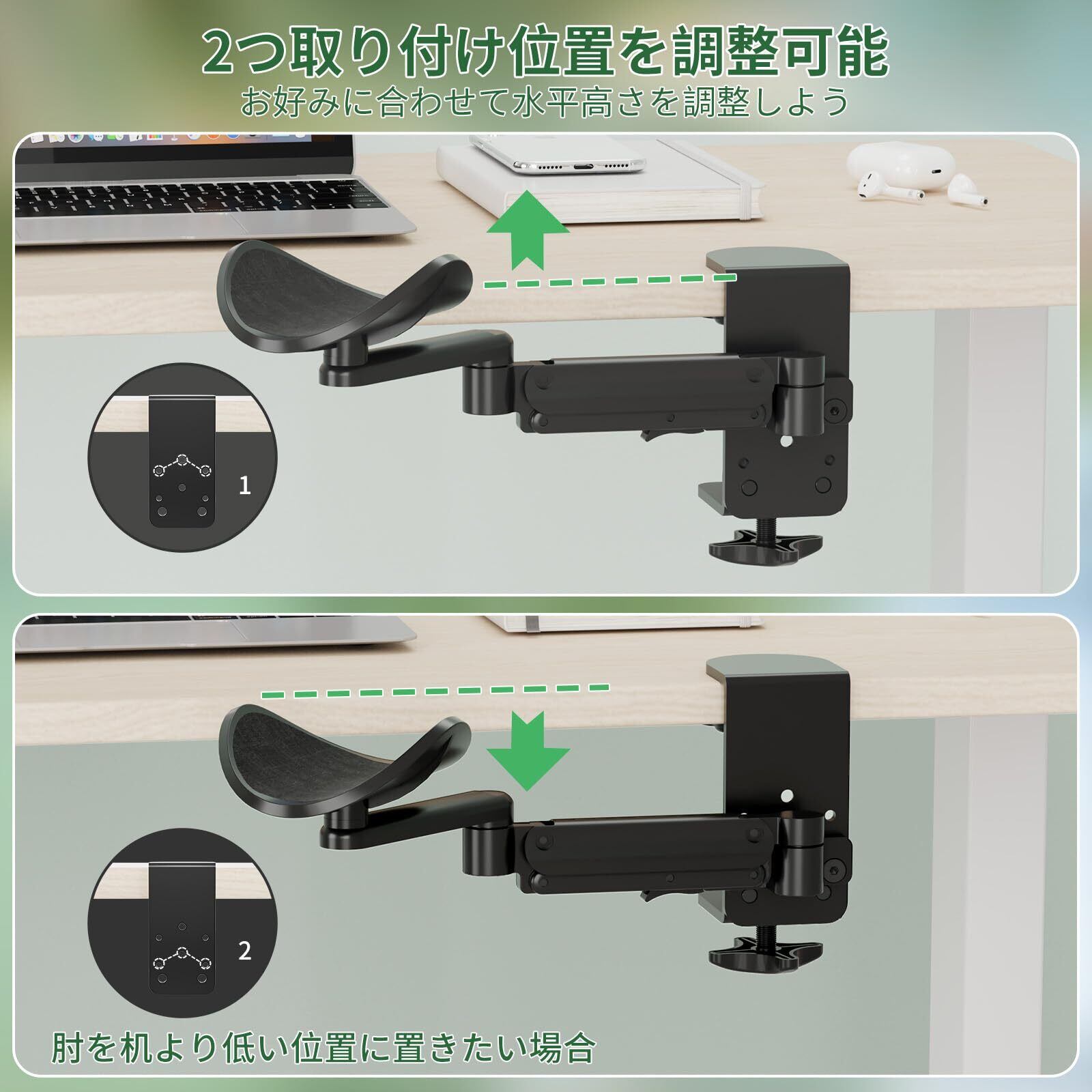 【在庫処分】GIBBON MOUNTS アームレスト 肘置き デスク用 肘掛け 最低は天板より3cm低い アームレスト パソコン 六段高さ調整可能 リストレスト 360°多角度回転 肘 腕 肩 疲労を軽減 耐荷重5kg アームスタンド 肘置き デスク パームレス 黑 ブラック | SmartLiving+