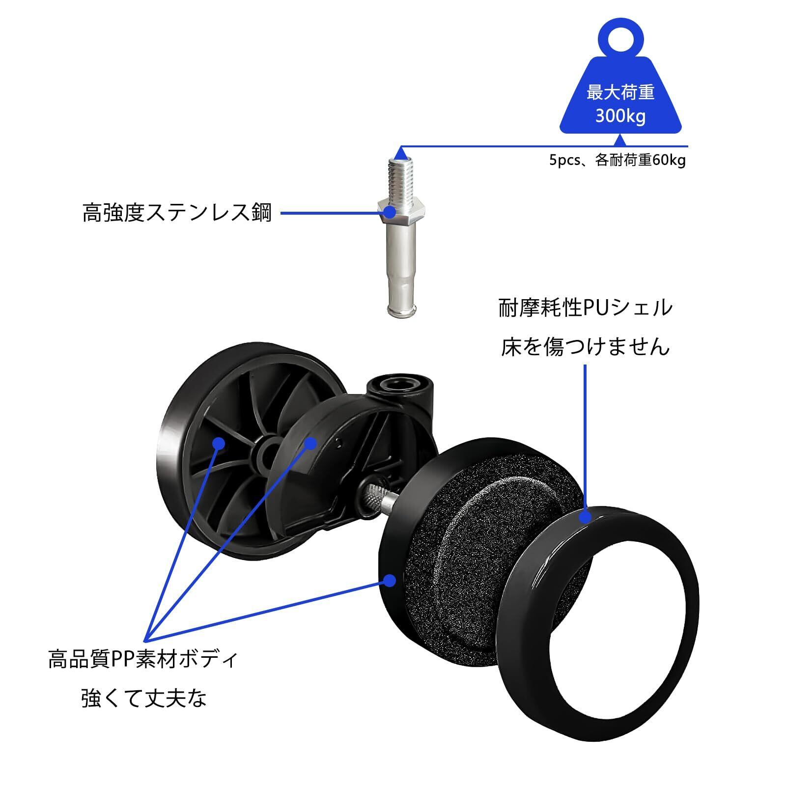 キャスター ウレタンキャスター 椅子キャスター 家具移動キャスターストッパー 固定脚の交換と改造 2インチネジ 8MMX15MM (5点セット) 家具 スタンディングデスク用 電動昇降式デスク用 オフィスチェア用 台車用 高耐久性 キズ防止に 360度回転 静音型 (ブラック) (ねじ込み式)