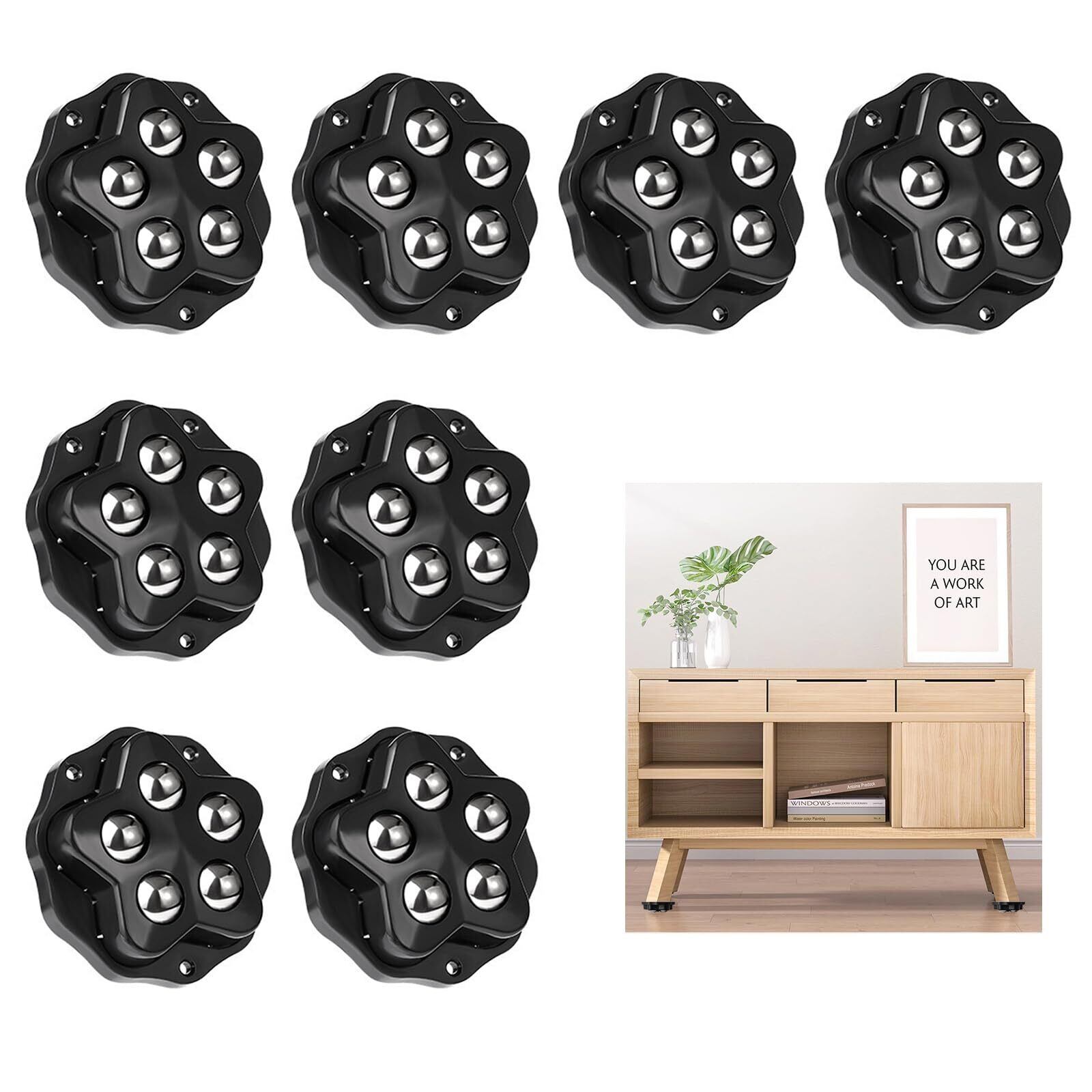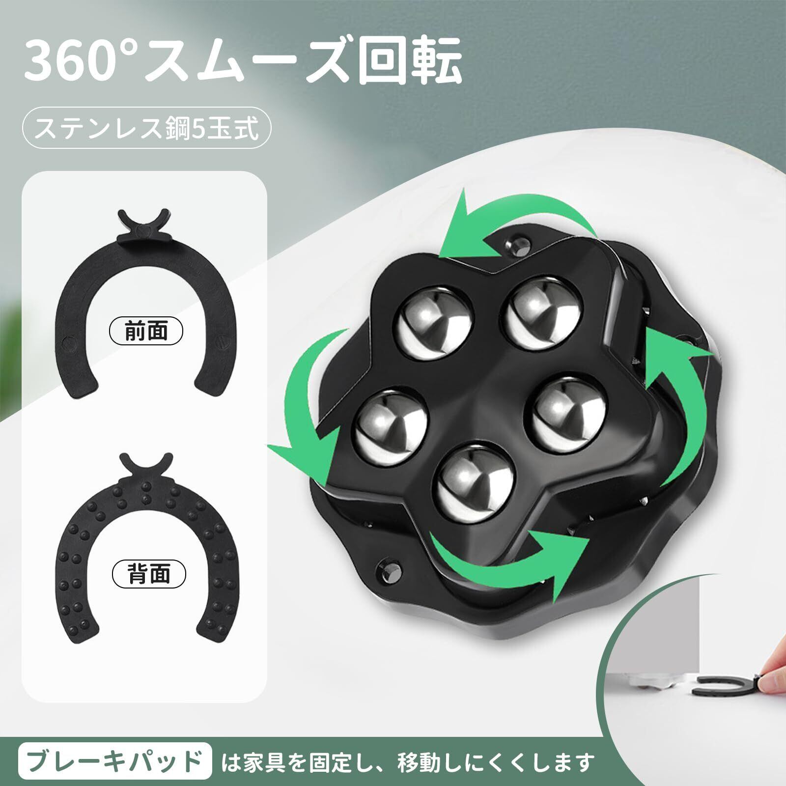 【360°スムーズ回転】高精度ステンレス鋼球5点配置により、家具の方向転換や狭い場所の移動も軽い力で実現。重い家電でも引っかかりのない滑らかな操作性を提供します。