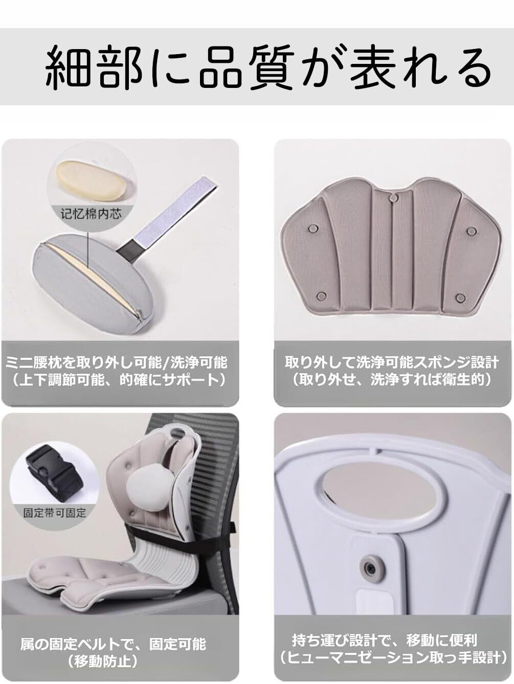 多目的使用: オフィスチェア、車の運転席、自宅での作業など、様々な場面で使用可能な汎用性の高いクッション