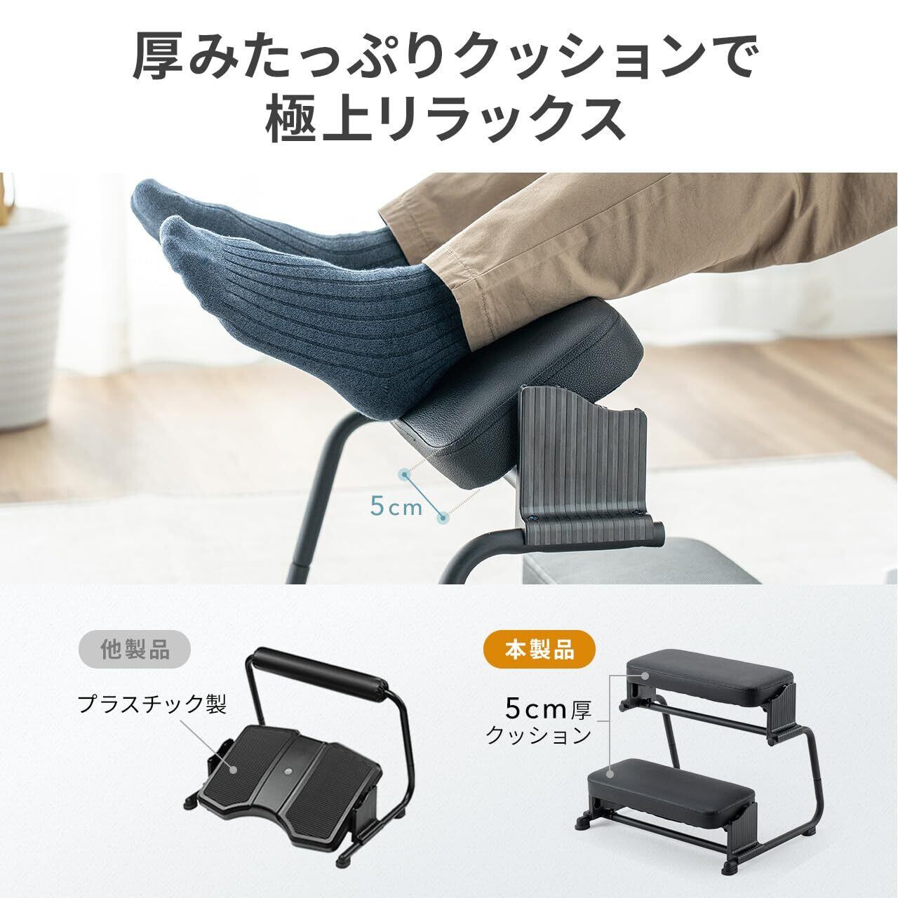 サンワダイレクト フットレスト オットマン 3WAY 極厚クッション 2段 高さ調整3段階 角度調整無段階 足置き デスク下 デスクワーク ブラック 100-FR037BK