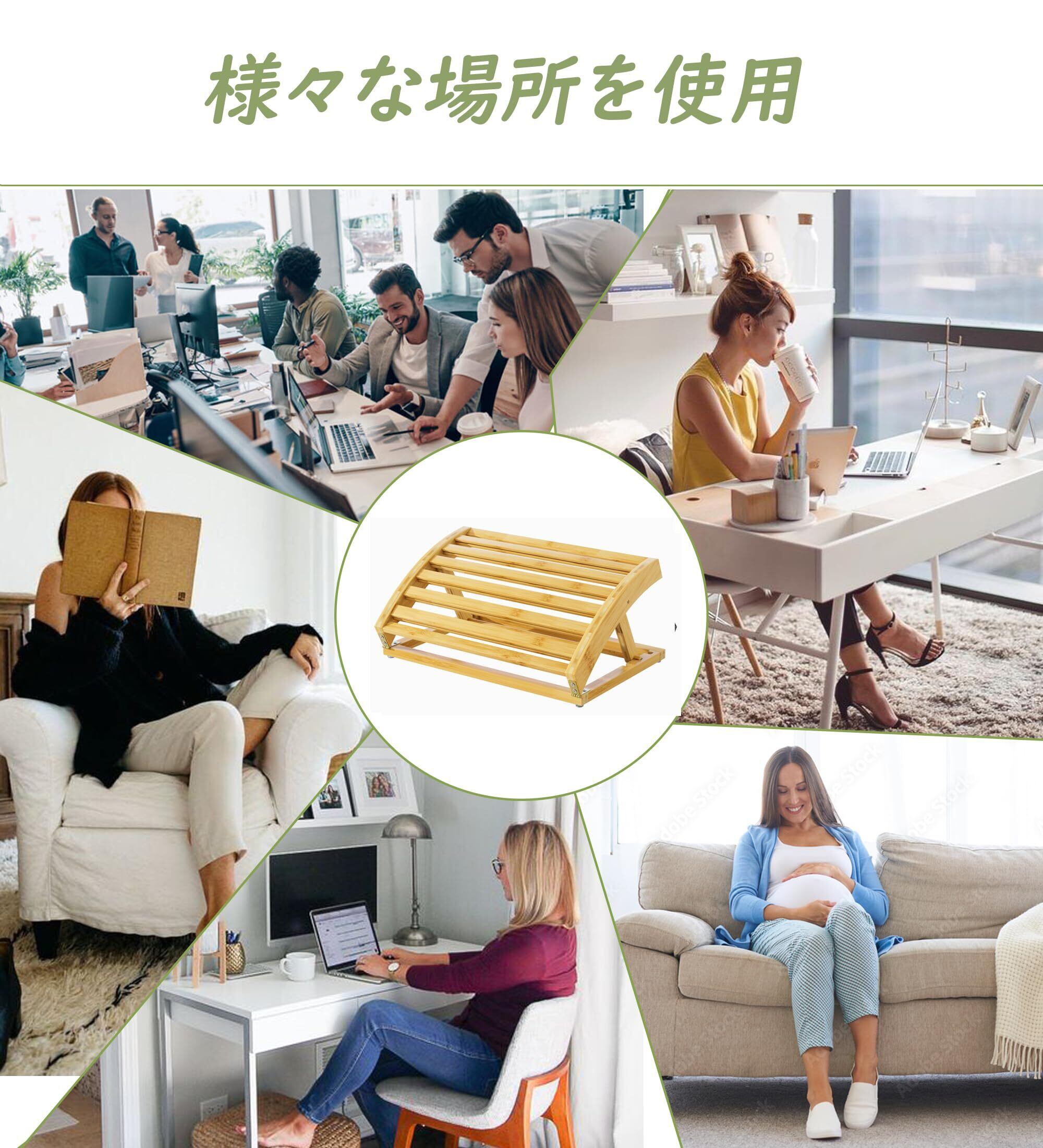 Focieulo フットレスト デスク下 高さ調整 オットマン 足置き台 折り畳み 三段階角度調節 机の下 足台 テレワーク用 取扱簡単 自宅 オフィス 竹製 竹色
