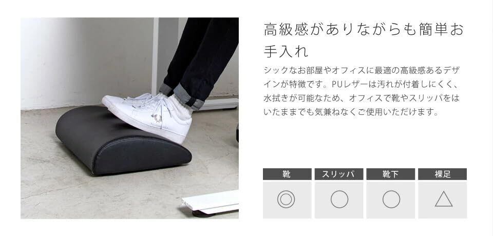【数量限定】デスクワークを足元から支える高密度ウレタン製フットレスト BORDERLESS(ボーダレス) フットクッション (PUレザー ブラック)