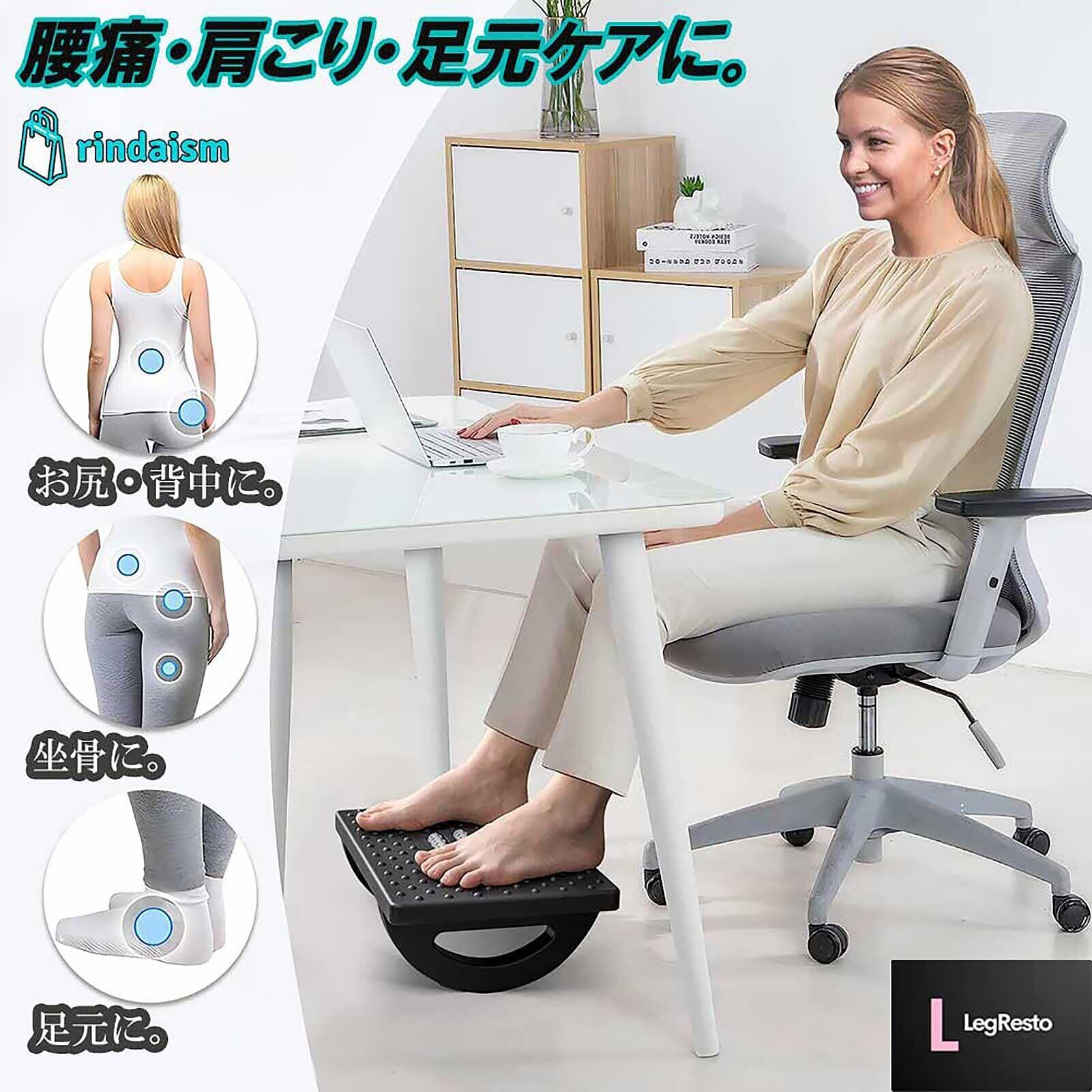 【期待できる効果】足を心地よく支え、むくみを防ぐことで長時間座っていても快適に過ごせて作業効率アップに。足を自然な位置に置くことで、姿勢を改善し、足を組まずに座る習慣をもたらします。