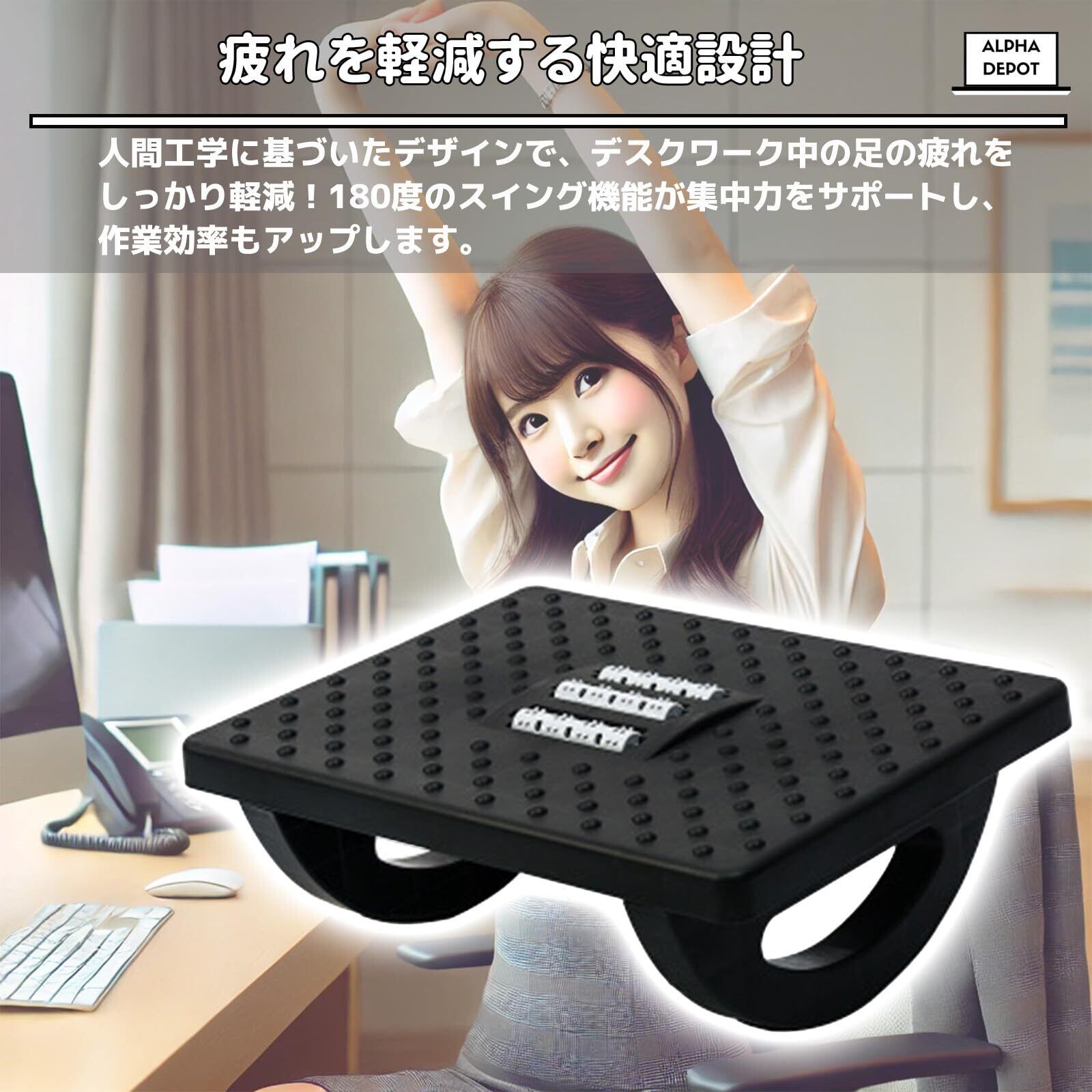 Alpha Depot フットレスト デスク下 足置き台 デスクワーク むくみ対策 角度調節可能 滑り止め付き