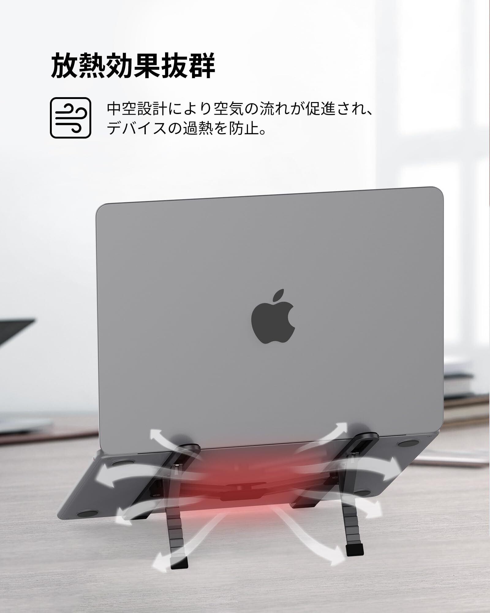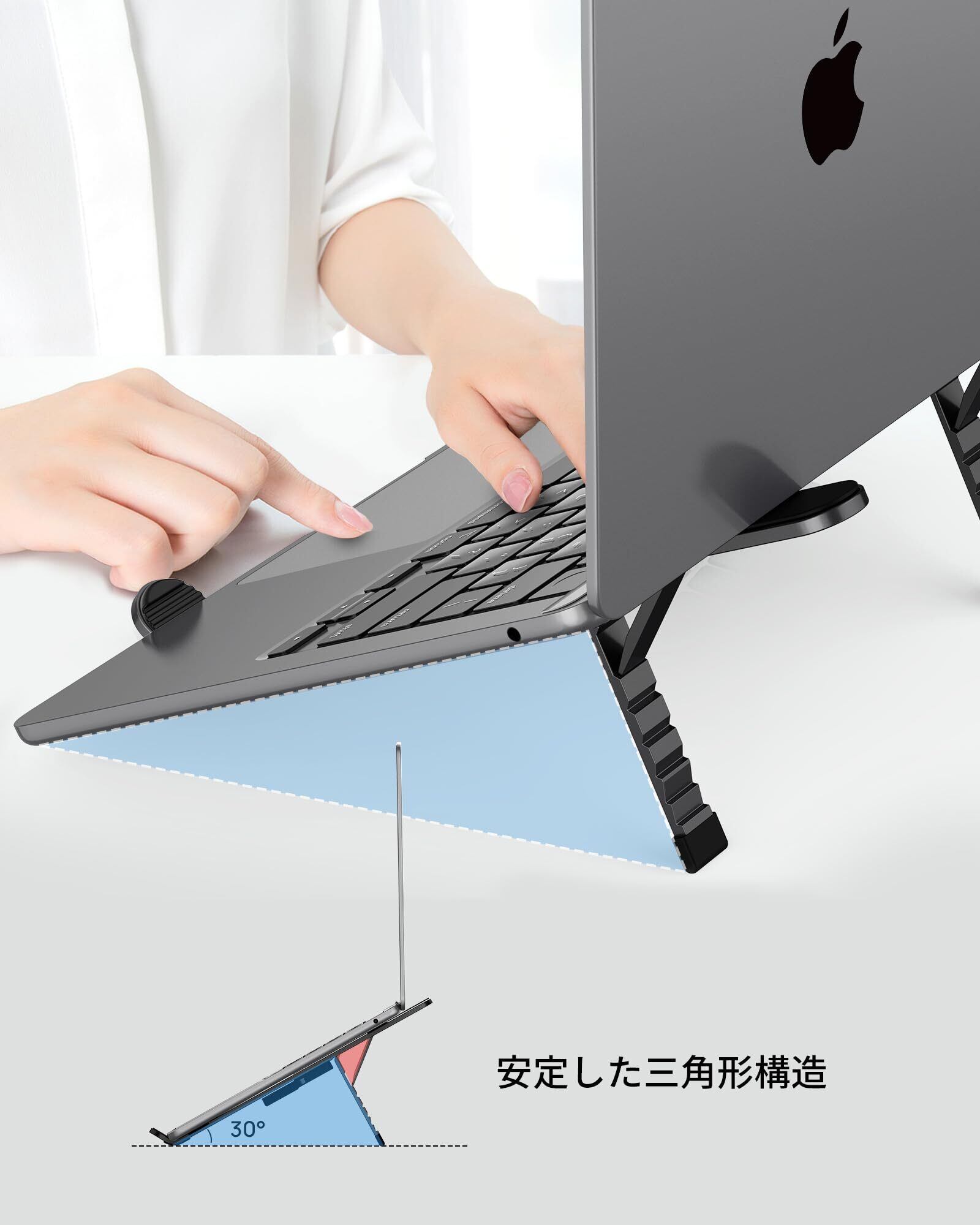 【放熱効果・安定性抜群】独特のV字型デザインにより、構造がシンプルで美しい。優れた放熱機能を備えており、長時間の使用でもノートパソコンの過熱を防ぎます。涼しく保ち、パフォーマンスと寿命を向上させます。さらに、本体は100%高品質のアルミ合金で作られており、頑丈で安定性が高い。強くタイピングしても揺らない。ゲームPCでも安定して使えます。