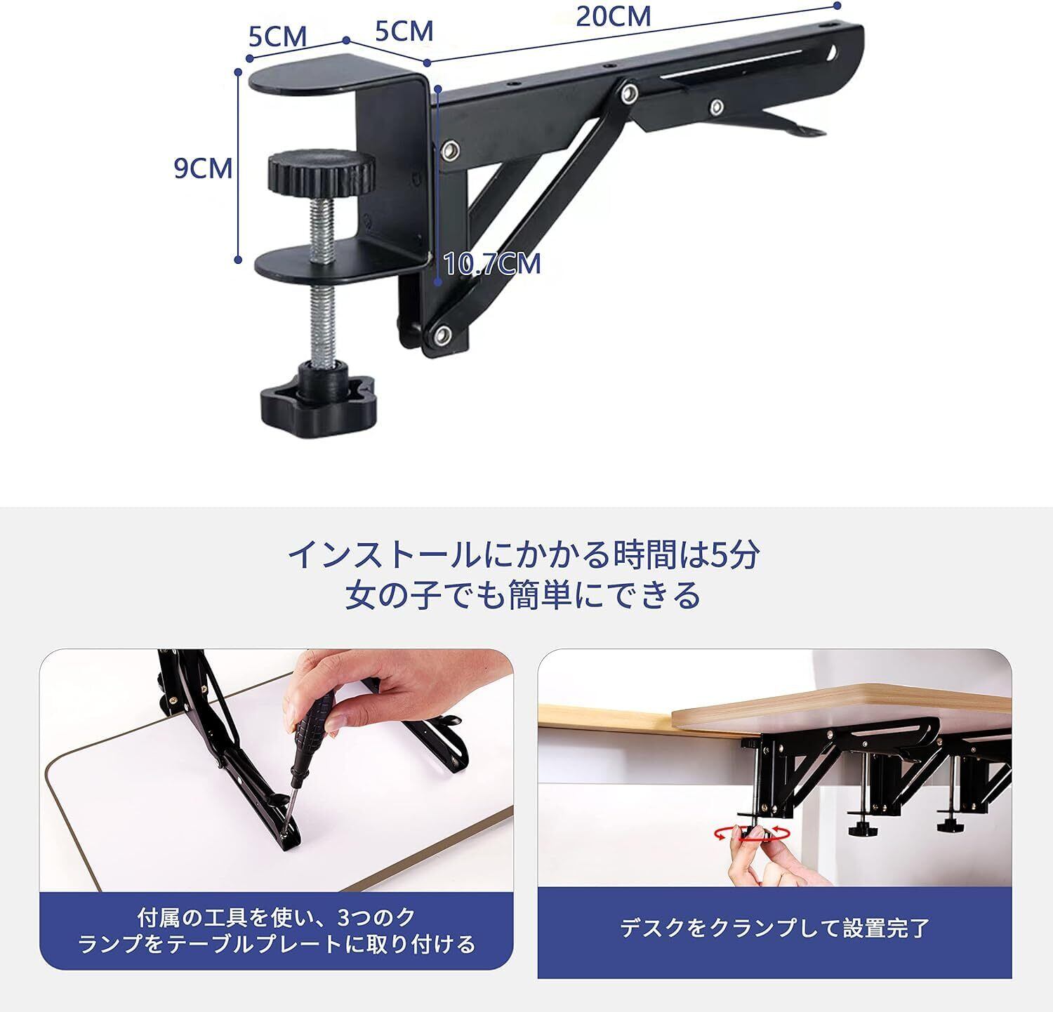 AiUToGo 高さ10cmの大きなクリップ口 デスクエクステンダー 折りたたみ パンチング不要 クランプ 金具 デスククランプ キーボードスタンド デスクトップpc 置き台 デスク 拡張 クランプ デスク 棚 キーボードトレイ (3個入り)