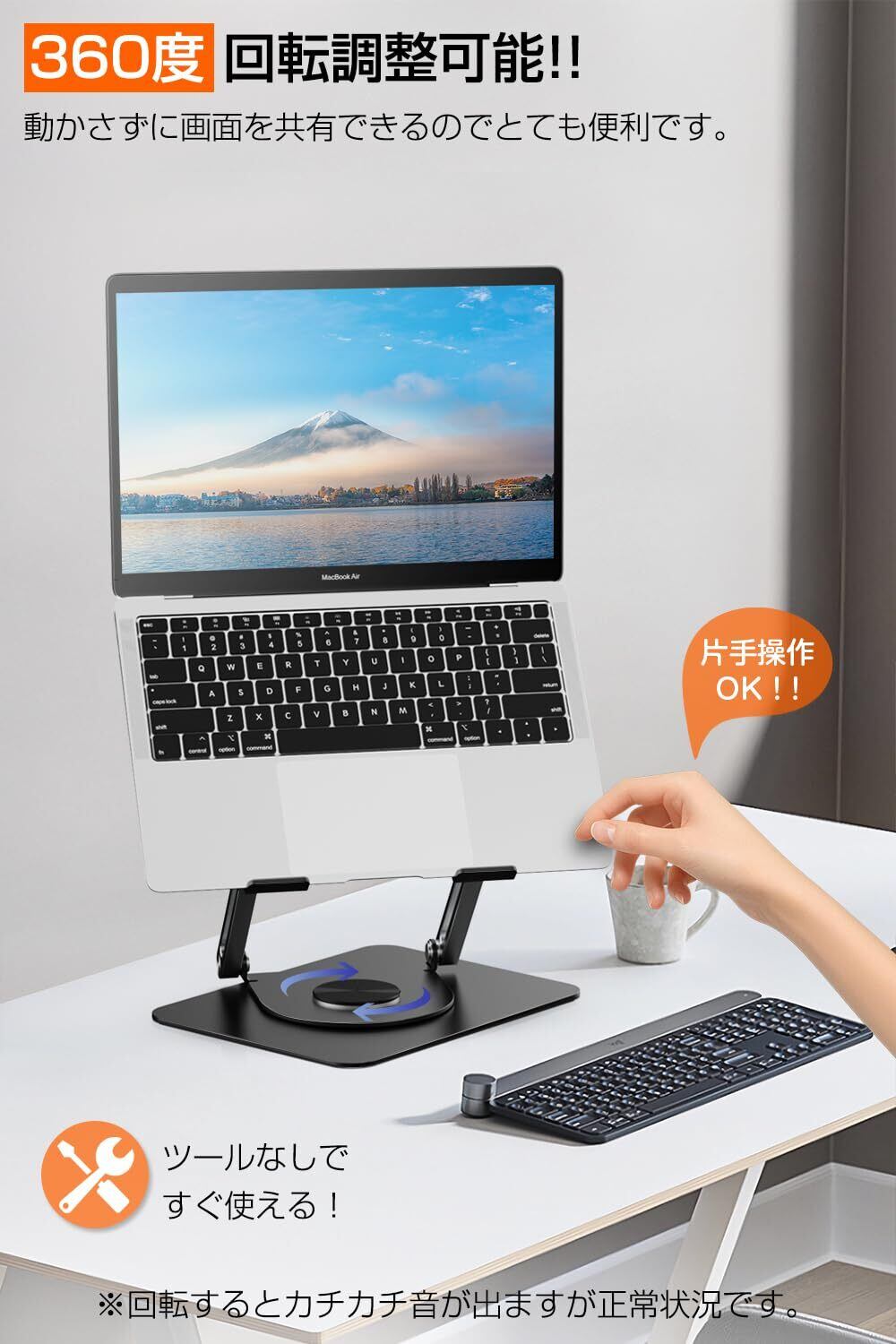 ■【快適な作業環境を実現!】ZEEKKのノートパソコンスタンドは、360度回転式で自由な角度調整が可能です。これにより、目線を高く保ち、猫背や肩こりを軽減することで長時間の作業でも快適な姿勢をサポートします。テレワークやプレゼンテーションでも、ストレスフリーで使える設計です✨。